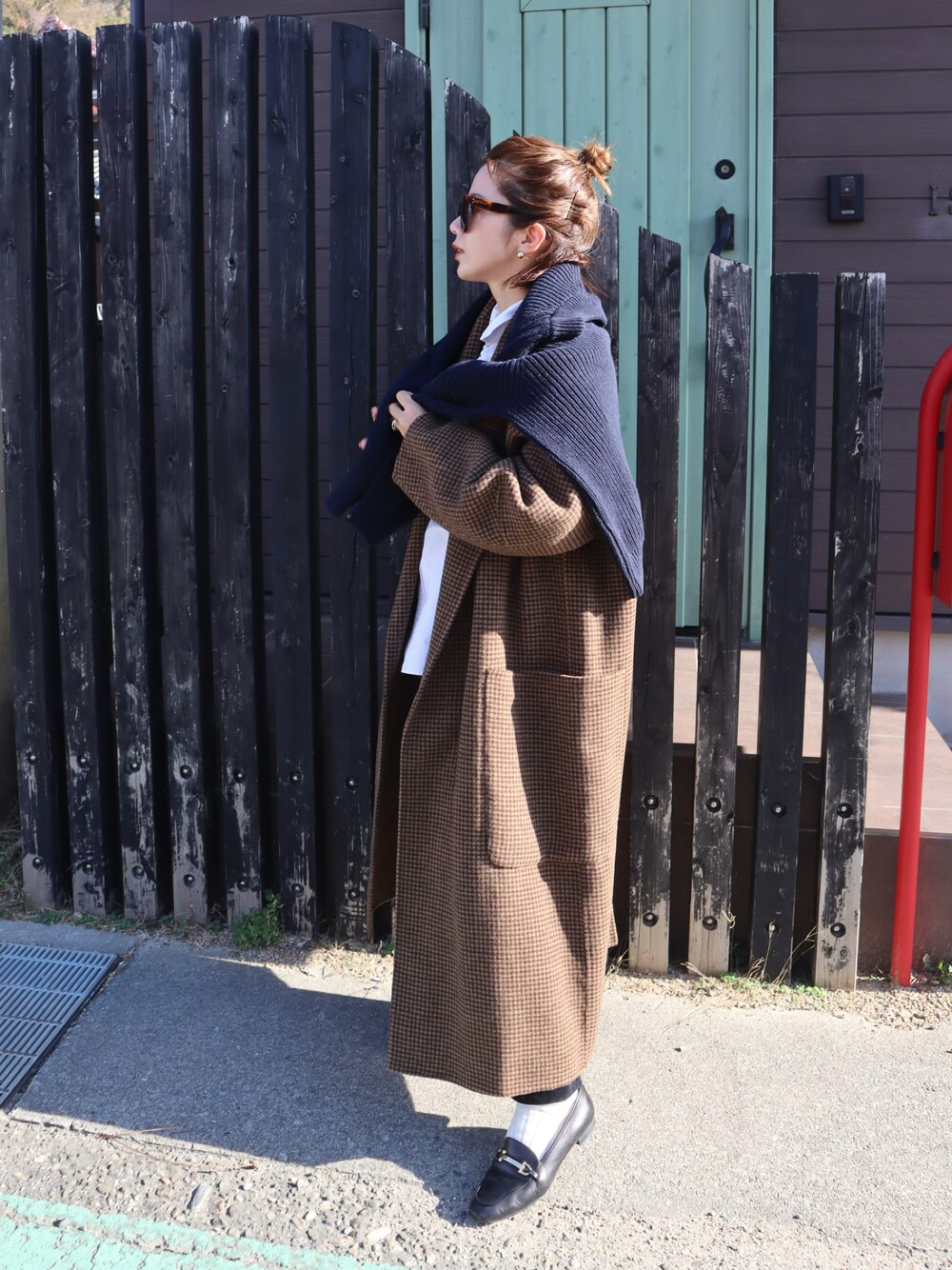 todayfulのコートに ニット肩がけ。