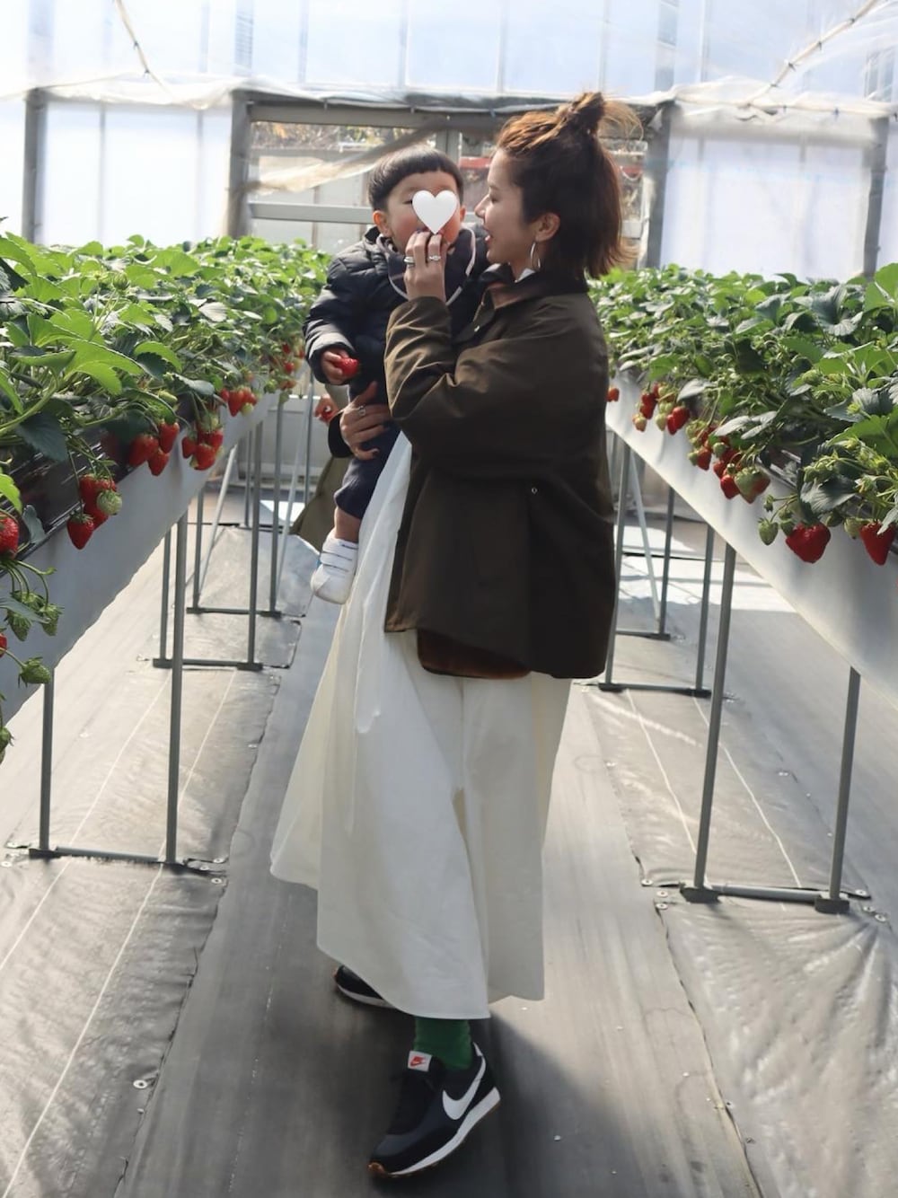 いちご狩り🍓 ワンピースの下にいっぱい着込んでます👗🌿😙