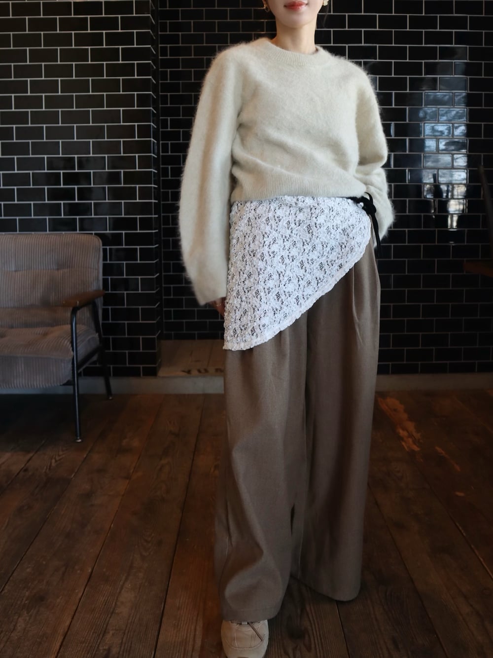 miisuuzuukiiのニット/セーター「unfil アンフィル / royal baby alpaca fur cropped sweater ロイヤルベイビーアルパカ ファークロップドセーター ニット / WHFL-UW138」を使ったコーディネート