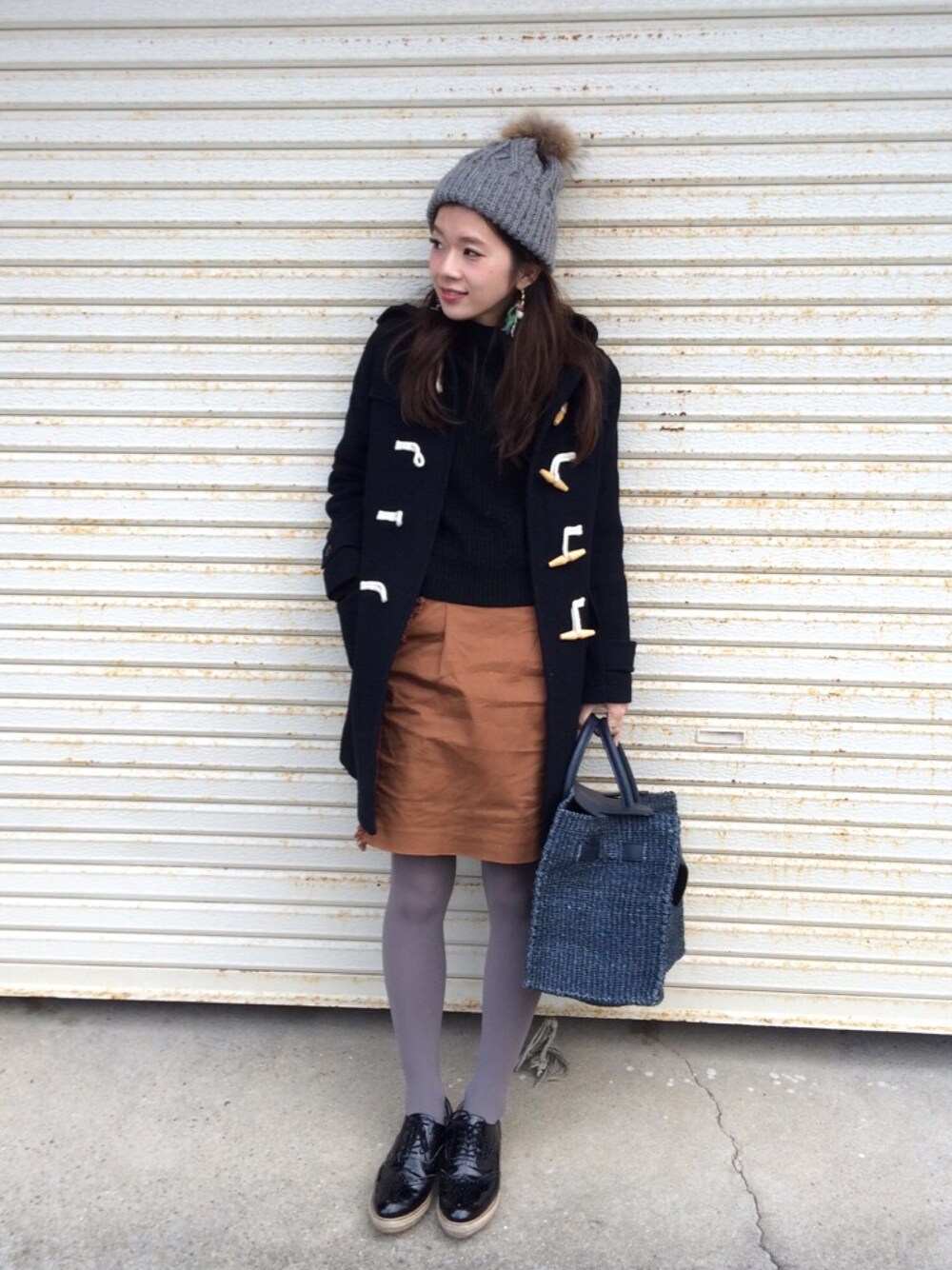 miisuuzuukiiのニットキャップ/ビーニー「BY∵ ファーポンポンケーブルニットキャップ」を使ったコーディネート