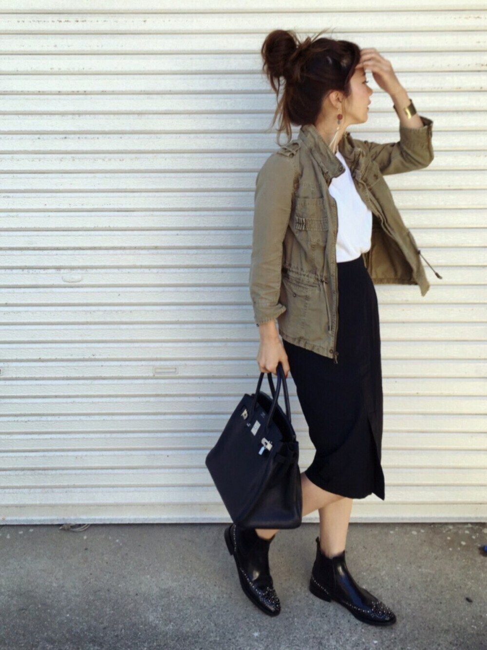 miisuuzuukiiのスカート「Cダンプミモレ丈タイトSK」を使ったコーディネート