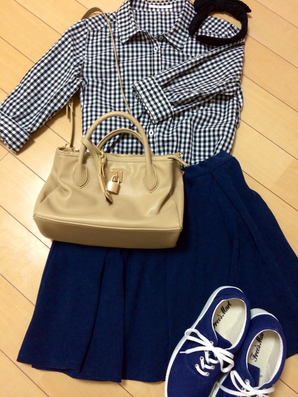 ギンガムチェックシャツとハイウエストのスカートでレトロなデートスタイルに‥♡