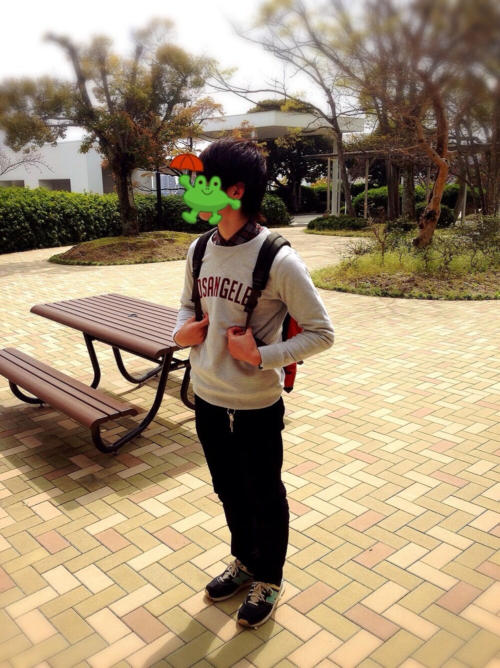 キャンパスライフをラフな格好で。 スウェットに黒スキニーをあわせてみました。(^o^)/
