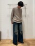 ブルーのダメージデニムにグレーのブルゾンを合わせたコーデを組みました。 このブルゾンは着丈はそこまで長くないアイテムですが、肩幅がしっかりしている為思っている以上にゆったり着れて、あったかいアイテムです! このダメージデニムはURのスタッフが作成したデニムになっています。 またこのダメージデニムはダメージ部分が大きすぎず、ワイドパンツである為、デニムパンツをお探しの方にピッタリな商品になっています。
