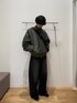 グリーンのブルゾンにブラックのワイドデニムを合わせた冬コーデです。 全体的にカジュアルに感じたので、足元にもスニーカーを合わせました。ボディバッグを背負うことでコーデに一癖加えました。 インナーのスウェットはSENSEOFPLACEの定番スウェットで裏起毛がある暖かいスウェットです。 冬のインナーとして大活躍間違いなしのアイテムです!