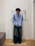 ブルーのシャツにダメージデニムのを合わせたブルーコーデです。 今季登場したこちらのシャツはカラー展開も豊富なアイテムです。ダメージデニムは現在60%offの商品で、ワイド幅も広く、フルレングスで履けるアイテムです。 ブルーのシャツにスカーフを合わせることで普通のブルーコーデではなく、一癖加えることができます。