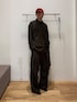 ブラウンのウェスタンシャツにブラウンのカーゴパンツを合わせたコーデです。 柔らかい素材のウェスタンシャツは今季から登場したアイテムです。同系色の小さめなボタンと胸元のスリットが可愛いアイテムです。 ブラウンのワントーンだけでなく、オレンジのキャップを合わせることで明るさを加えました。