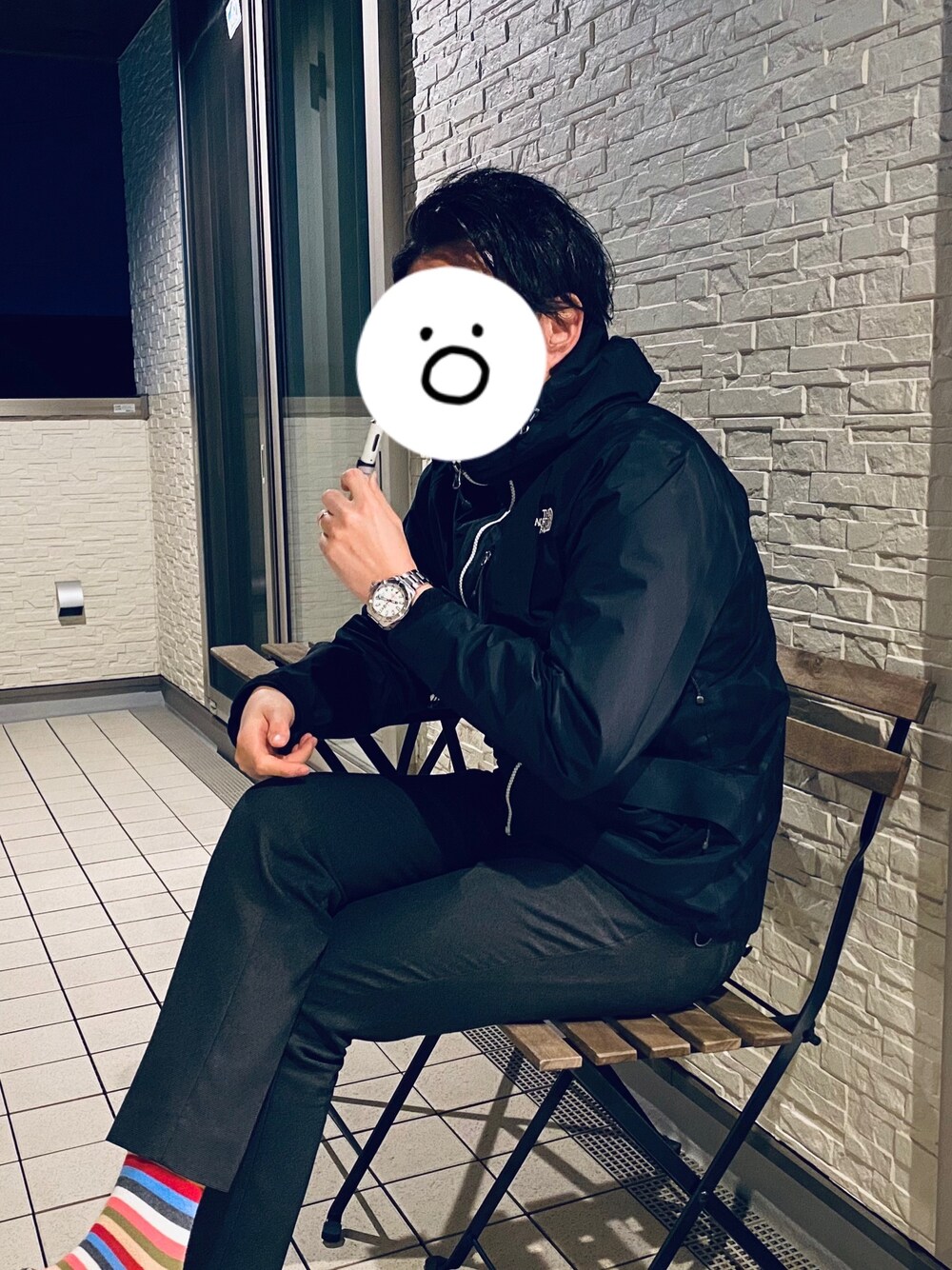 ベランダの一服という至福の時間も誰かに見られていることを少しだけ意識してますコーデ。