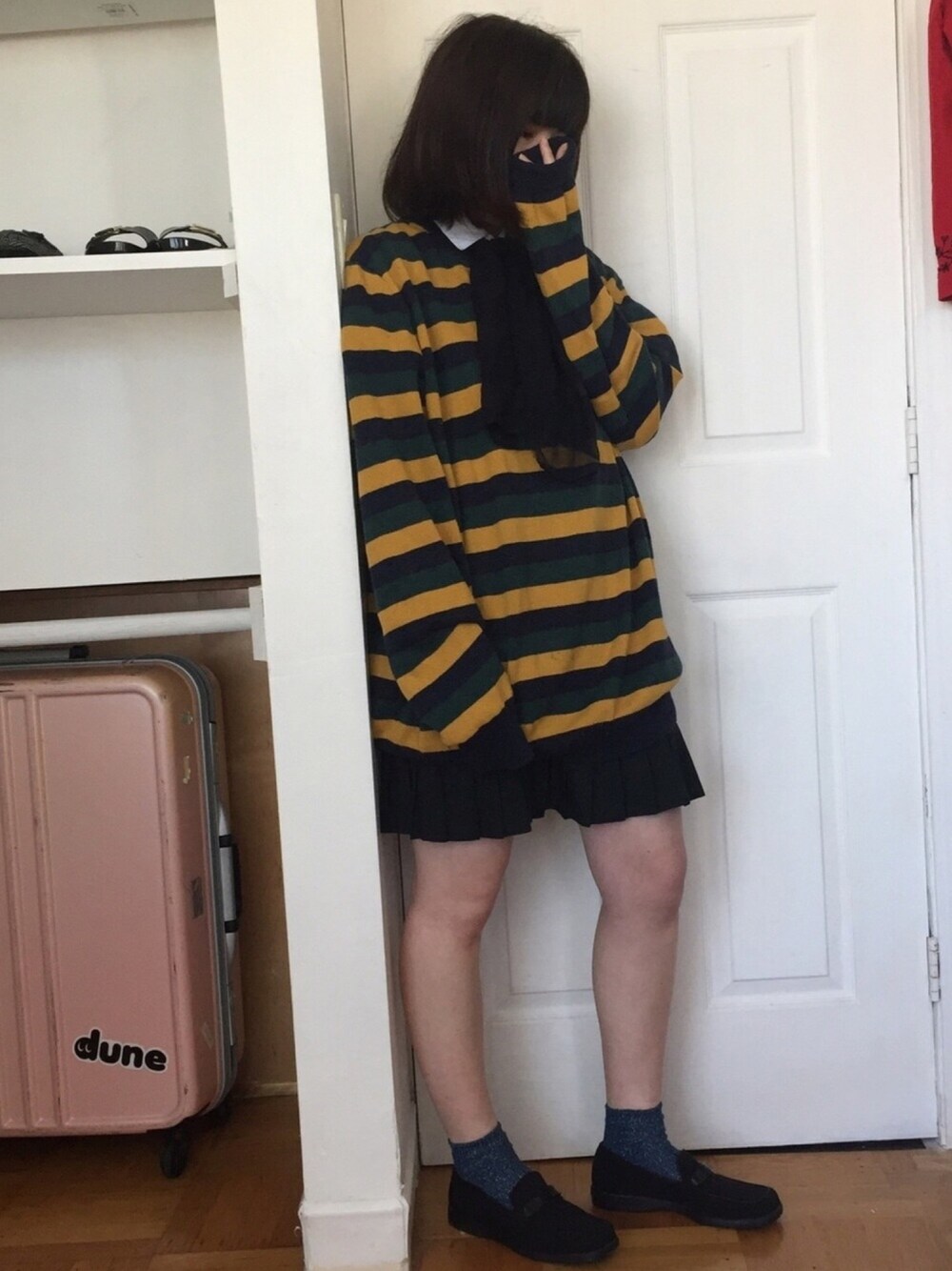 細長いシースルー系の布を首の周りに巻いてリボンタイに。 リボン結びはしないで一回だけ結んで今回は大人っぽく。