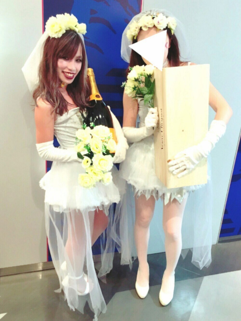 今年のハロウィンは花嫁ゾンビ🙈 *・゜゚・*:.。..。.:*・'(*゚▽゚*)'・*:.。. .。.:*・゜゚・* ネットで頼んだ衣装が写真と全然違って 宇宙人かバレリーナ状態… 手袋とパニエを上から着用して ベールのお花は自分たちで付けました🙌 髪もボサボサ感を出すために 軽く巻いてシルバーになるワックスで 散らしました😁 メイクは2時間かけてホラー感を演出💨 見事、クラブの仮装コンテストで 準優勝を頂きました😂👏👏👏 商品のVeuveClicquotマグナムボトルを みんなに振る舞って朝まで踊ったよ😎
