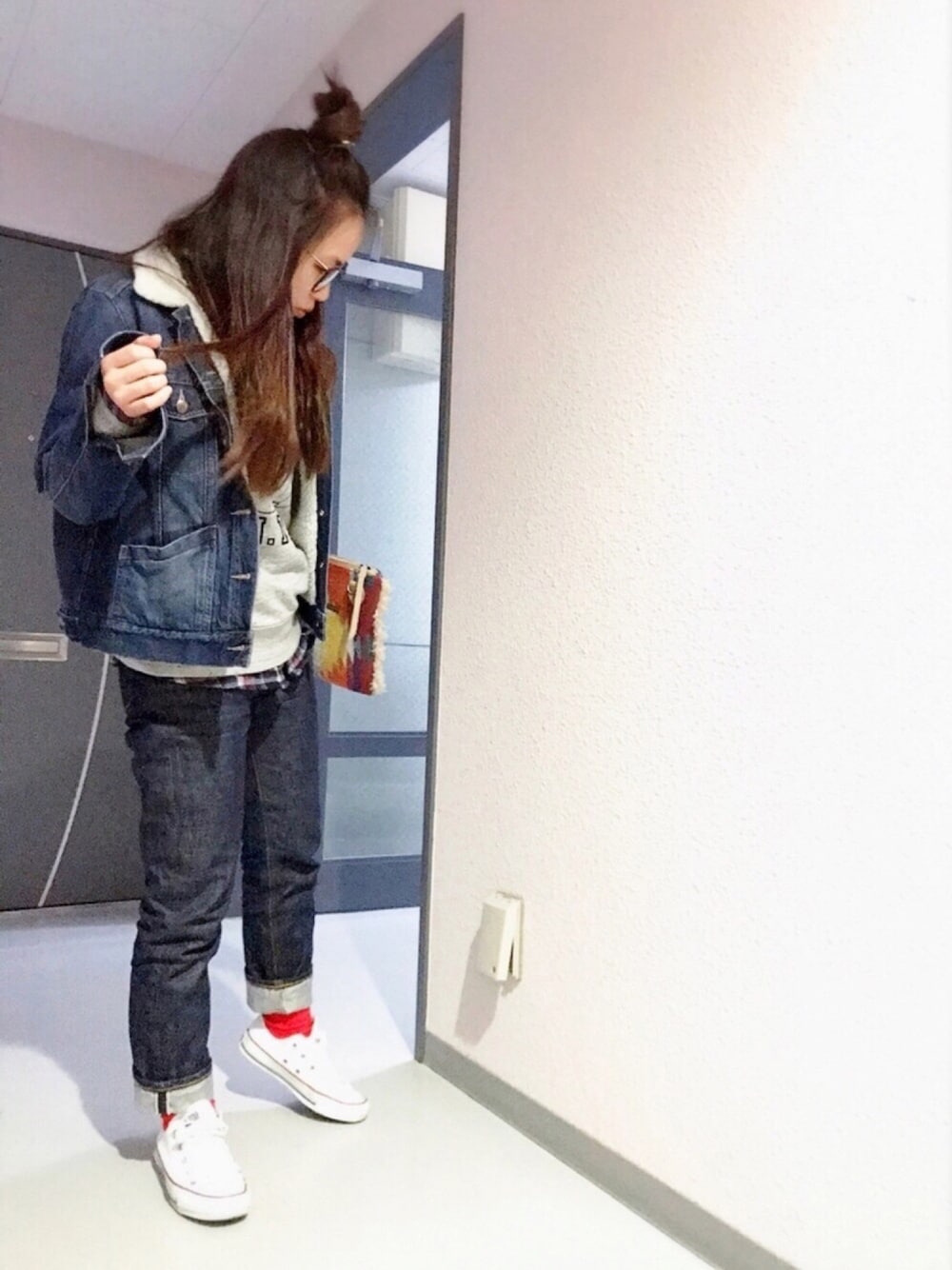 おはようございます🌞 編集したまま寝落ちしてた😂 ドラフトとは関係ない コーデになりました。笑 靴下屋の赤ソックスお気に入り♡ 親友ちゃんとおそろでげっとー🙆
