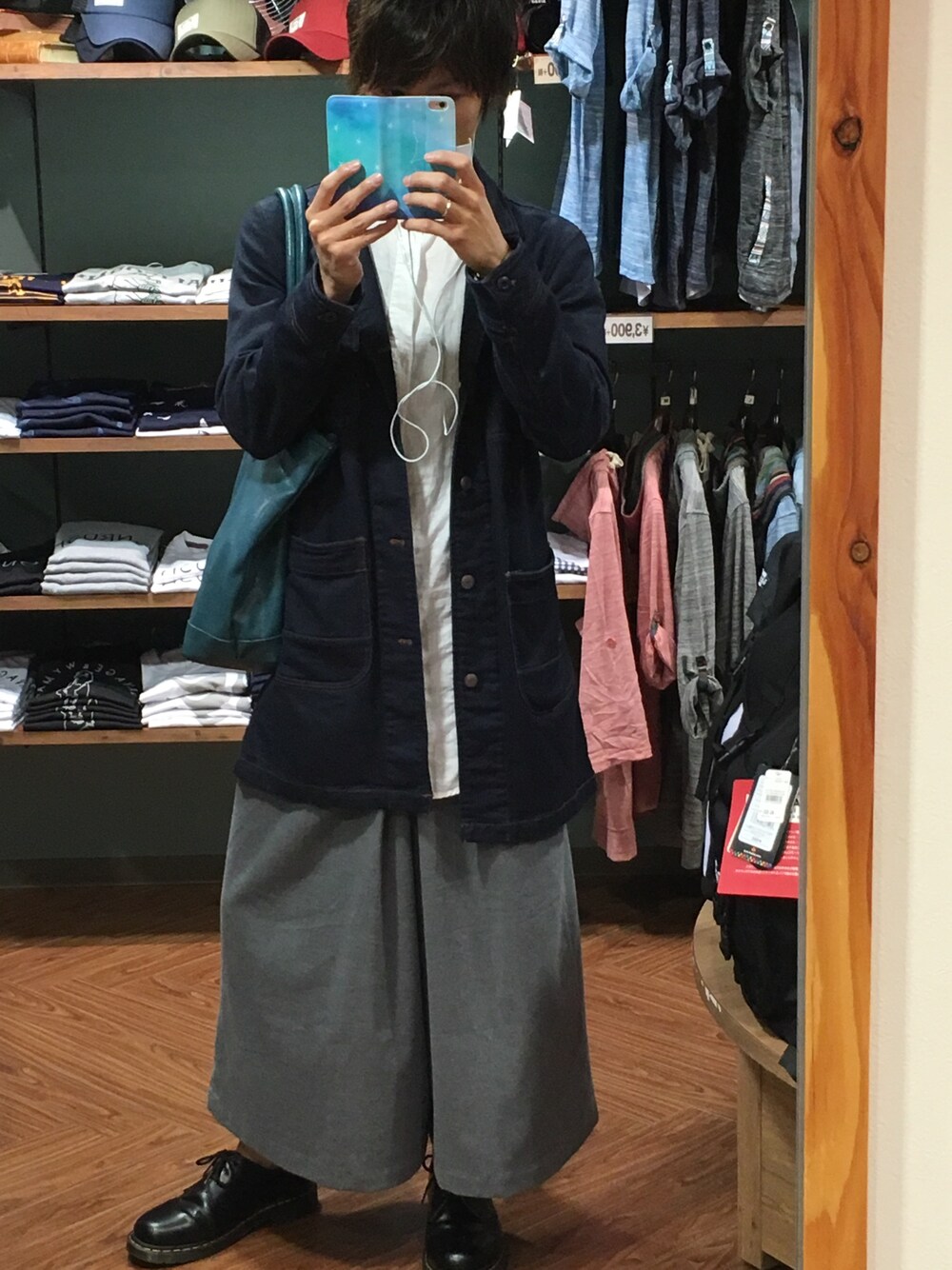 シャツは安定の白ロング パンツはタックガウチョで ゆるゆるっとラフな感じにしてみました! アウターはトレンドのデニムジャケットで 全体のバランスを整えました!
