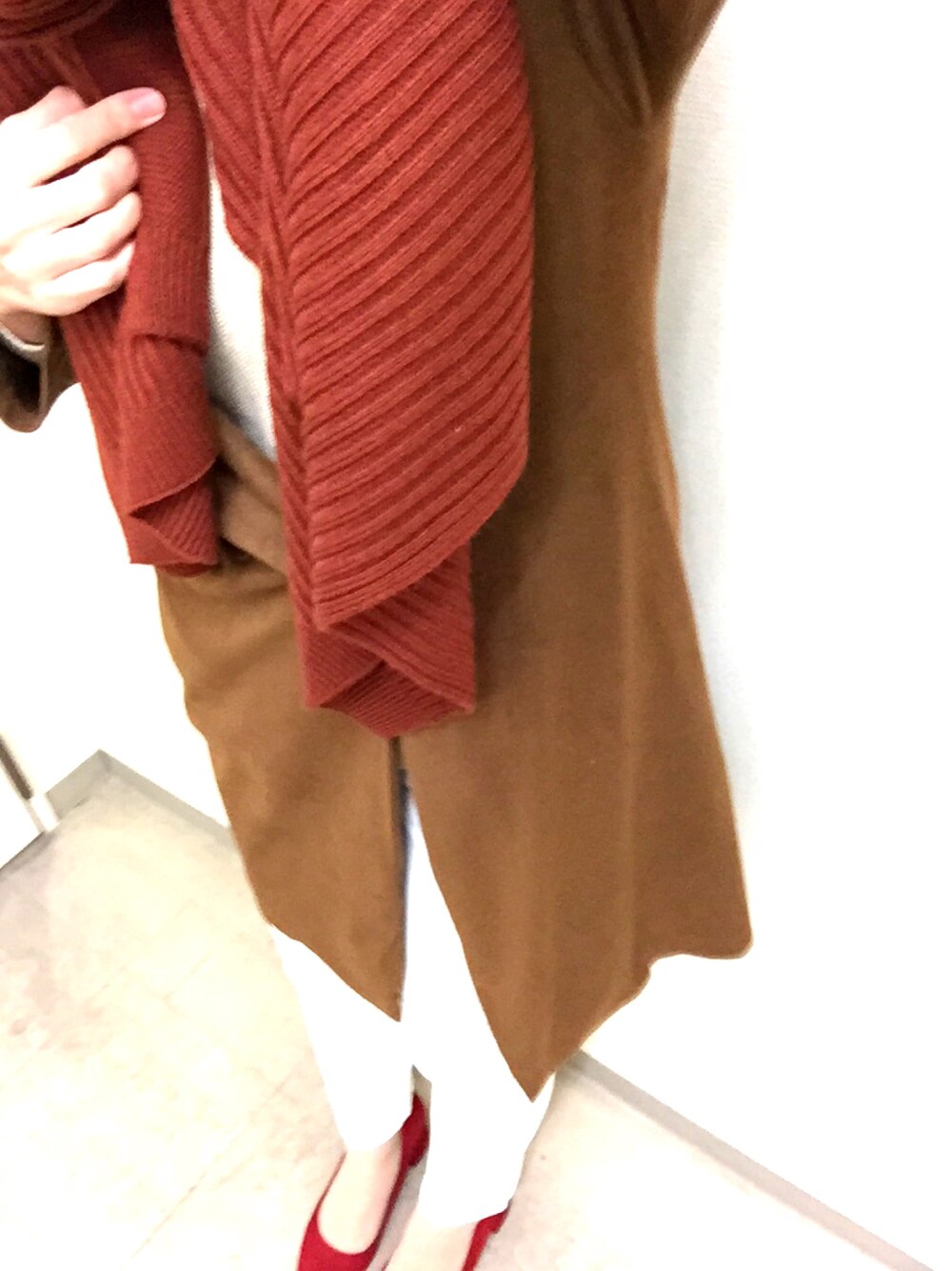 2016.11.25 Fri お仕事の後予定があったので ちょっとよそ行き用へ ユニクロのコーデュロイパンツあったかいです😍 全体的にシンプルめにしてますが 赤パンプスをアクセントに✨