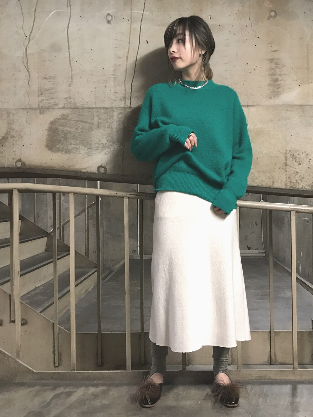 green×white カラーニットとラメトレンカは今の気分ですね。寒くなってもお洒落はぬかりなく、、、✌🏻