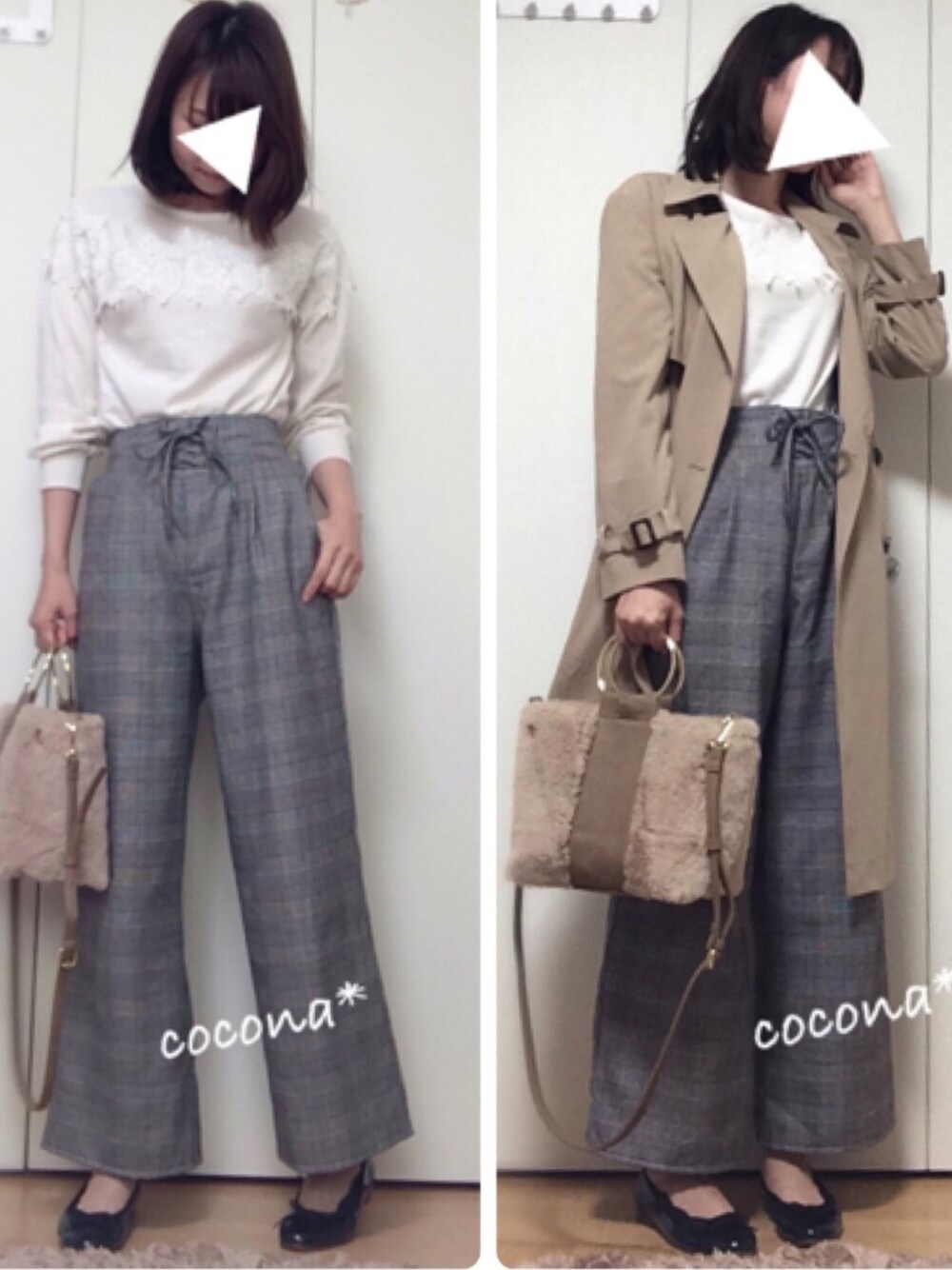 cocona*のその他パンツ「・m レースアップグレンチェックワイドパンツ」を使ったコーディネート