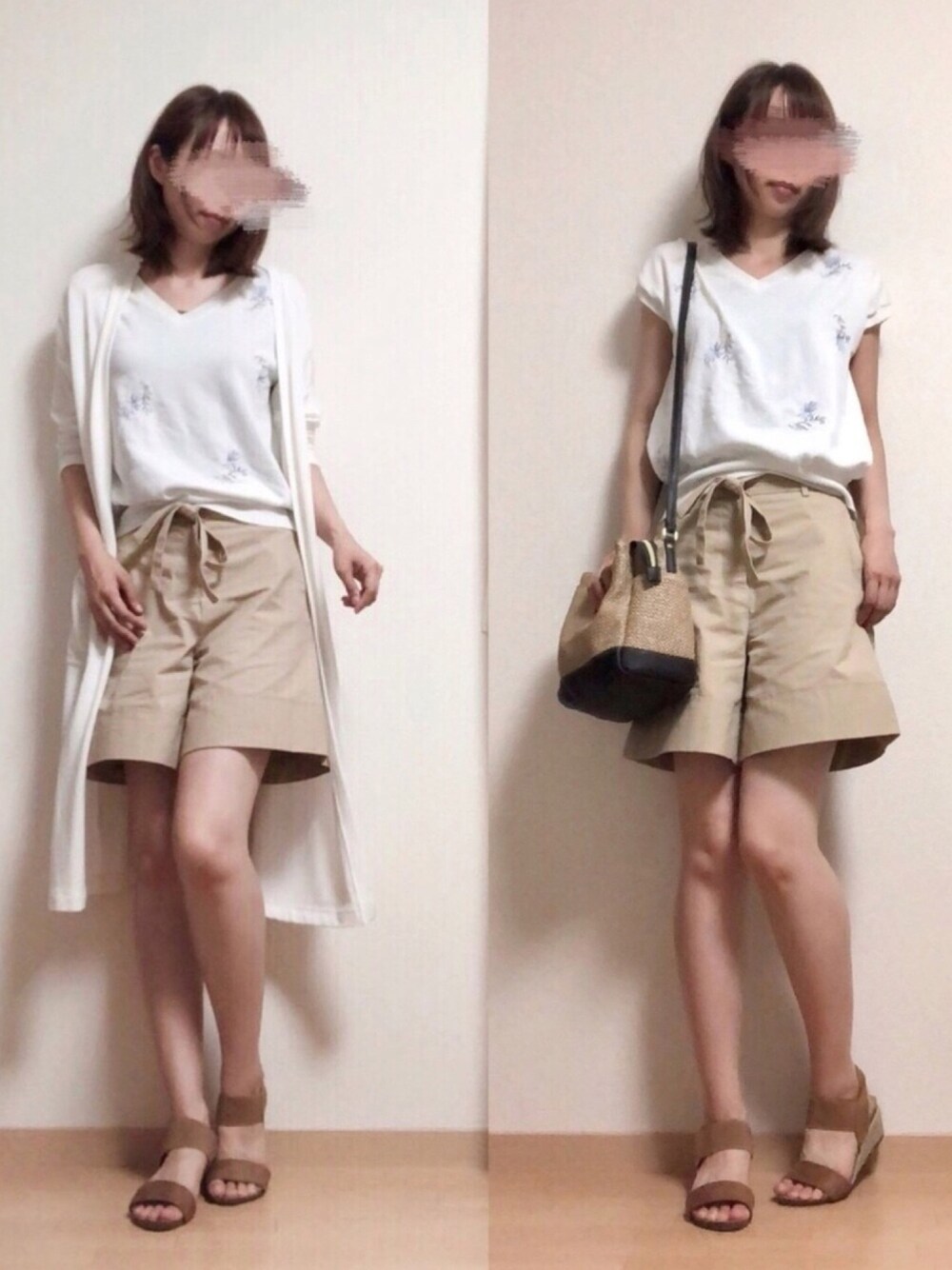 ご覧いただきありがとうございます😊✨ 暑くて短パン小僧感がすごい🤗 ショーパンは幅広めなので足が細く見える効果がある気がします🙆♀️ 去年セールで2100→からのクーポンで100円くらいでゲットしました、お得過ぎる🙆♀️ トップスも去年セールで購入してからヘビロテしてたものです🌸 ロングカーデは温度調節にピッタリですね。なんか似たようなのいっぱい持ってる🤗← いつもいいね、お気に入り、フォローも本当にありがとうございます🙇♀️❣️
