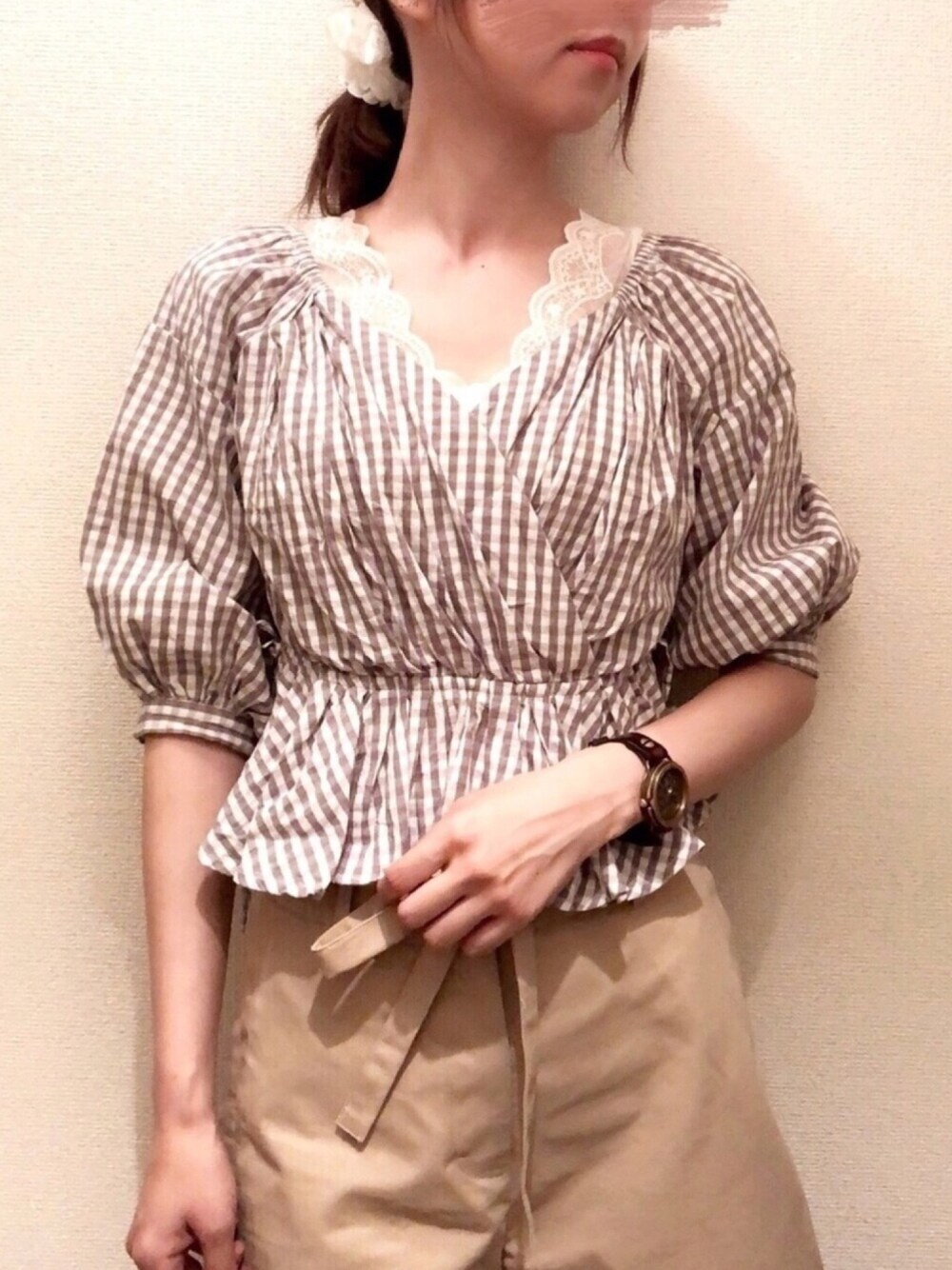 cocona*のシャツ/ブラウス「 3WAYギンガムチェックカシュクールブラウス」を使ったコーディネート