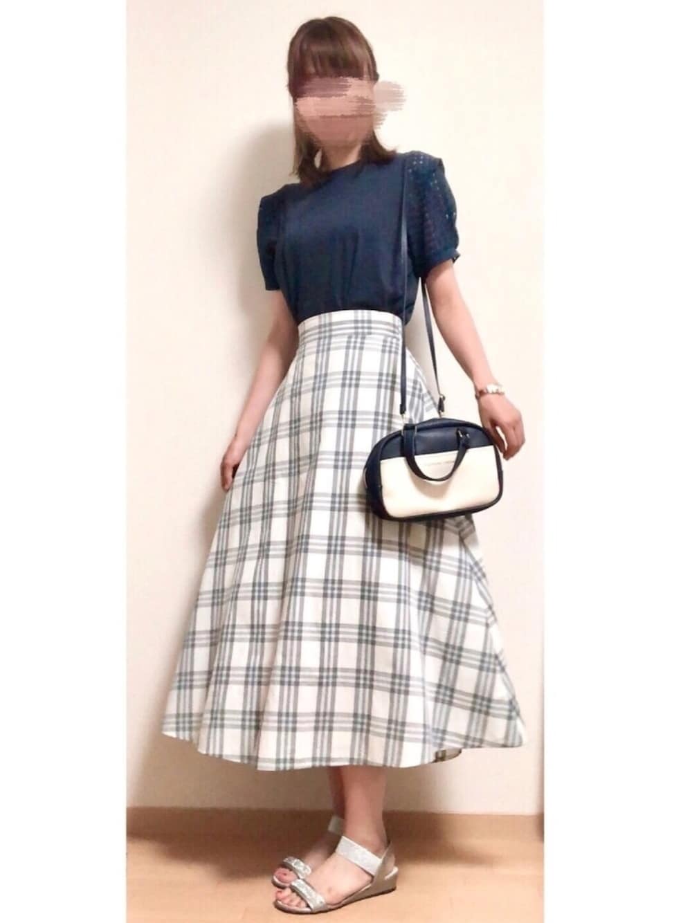 ご覧いただきありがとうございます😊 ネイビーのトップスは肩部分がうっすらチェック柄になってます♫ 何年か前に楽天で購入しました。 ツモリチサトのバッグはだいぶ前の雑誌の付録。使いやすい☺️ GUのチェックスカートは先日590円だったもの♫ ウエストきゅってしてるから細く見える👍 丈感も好き☺️✨ いつもいいね、お気に入り、フォローも本当にありがとうございます🙇♀️💕