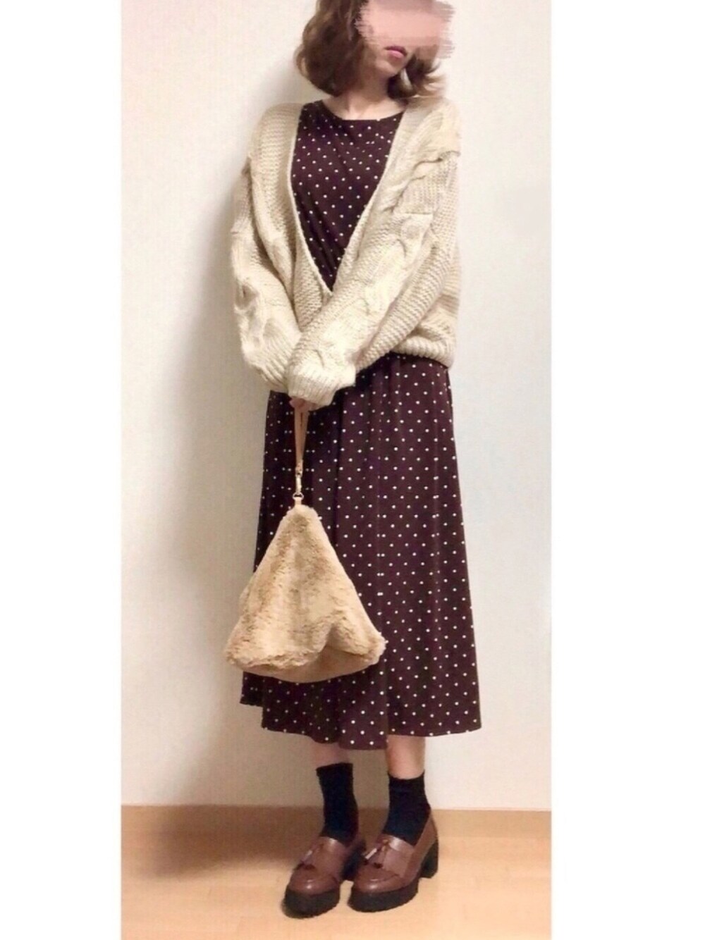 ご覧いただきありがとうございます😊 GUのドットワンピとニットカーディガンでブラウンコーデ😌 去年買った3COINSのファーバッグも相変わらず可愛いです。 欲しかったお洋服がもうすぐ届くから楽しみ🤤💕 またしてもチェック柄ばっかりだけど…ww いつもいいね、お気に入り、フォローも本当にありがとうございます!🙇♀️💕