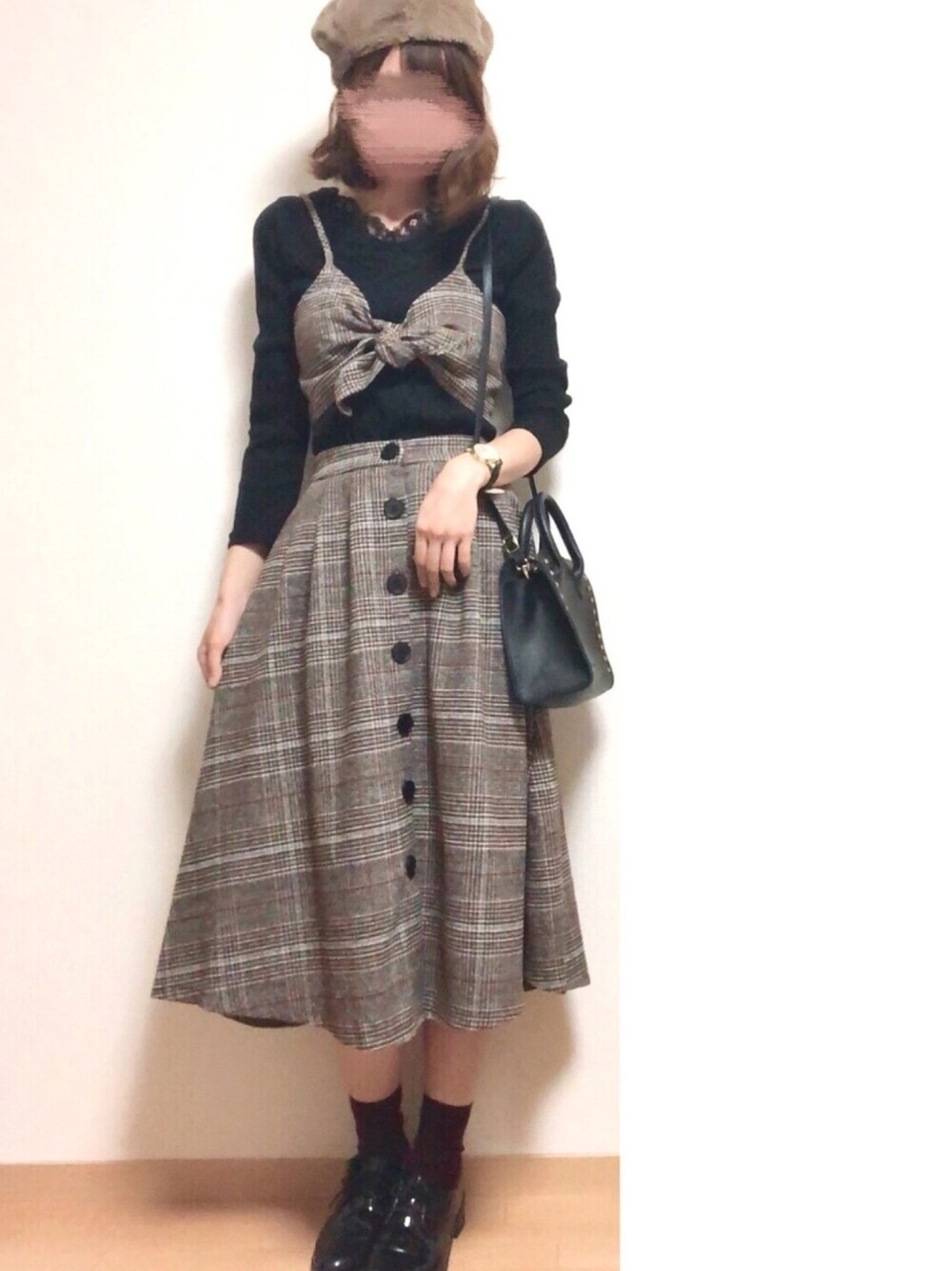 ご覧いただきありがとうございます😊 ビスチェとスカートのセットコーデ🙌 靴下はボルドーなのですが若干わかりにくいw ファー帽子で秋らしく🍁 いいね、お気に入り、フォローも本当にありがとうございます!🙇♀️💕
