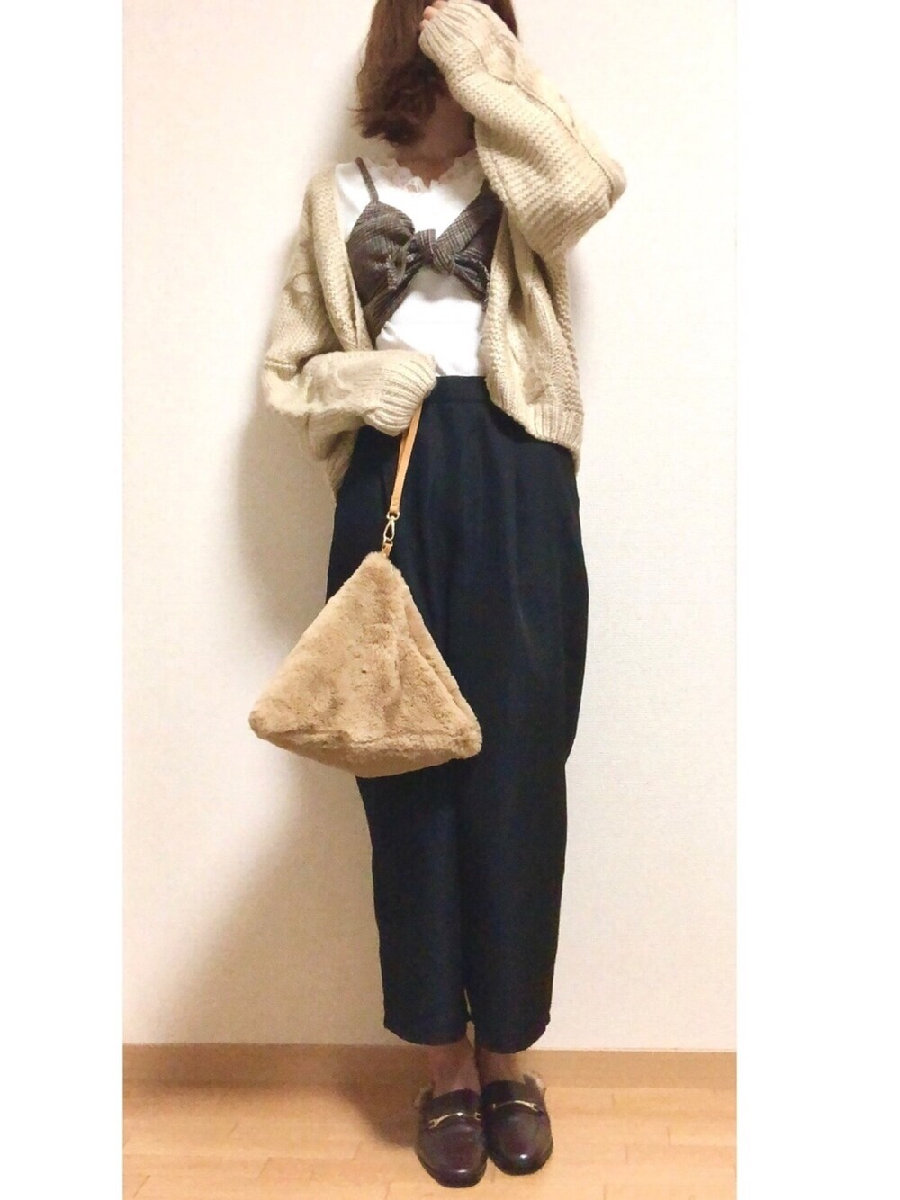 cocona*のカーディガン/ボレロ「【るうこ】ケーブルニットショートカーディガン」を使ったコーディネート