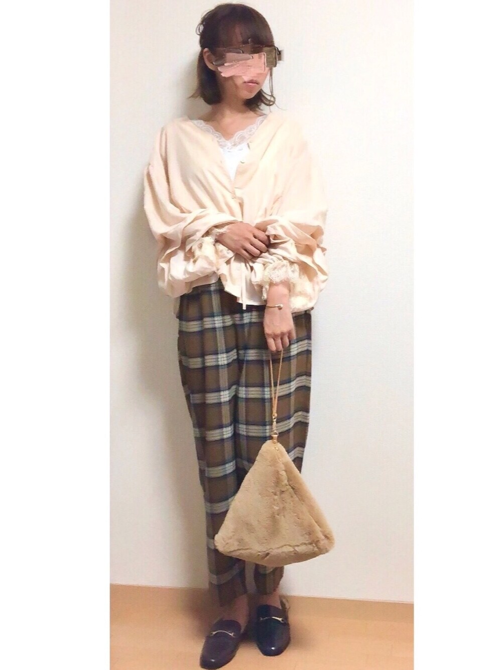 ご覧いただきありがとうございます😊 ちょっと前のコーデ。 ブラウスは、ふんわりボリューム袖が可愛いです☺️✨ 羽織にもなるし、優しい色合いで好み🙆🏻♀️ チェックパンツも程よいゆるさで、すごく好き。チェック好きすぎて増えていく…w いいね、お気に入り、フォローも本当にありがとうございます🙇♀️✨