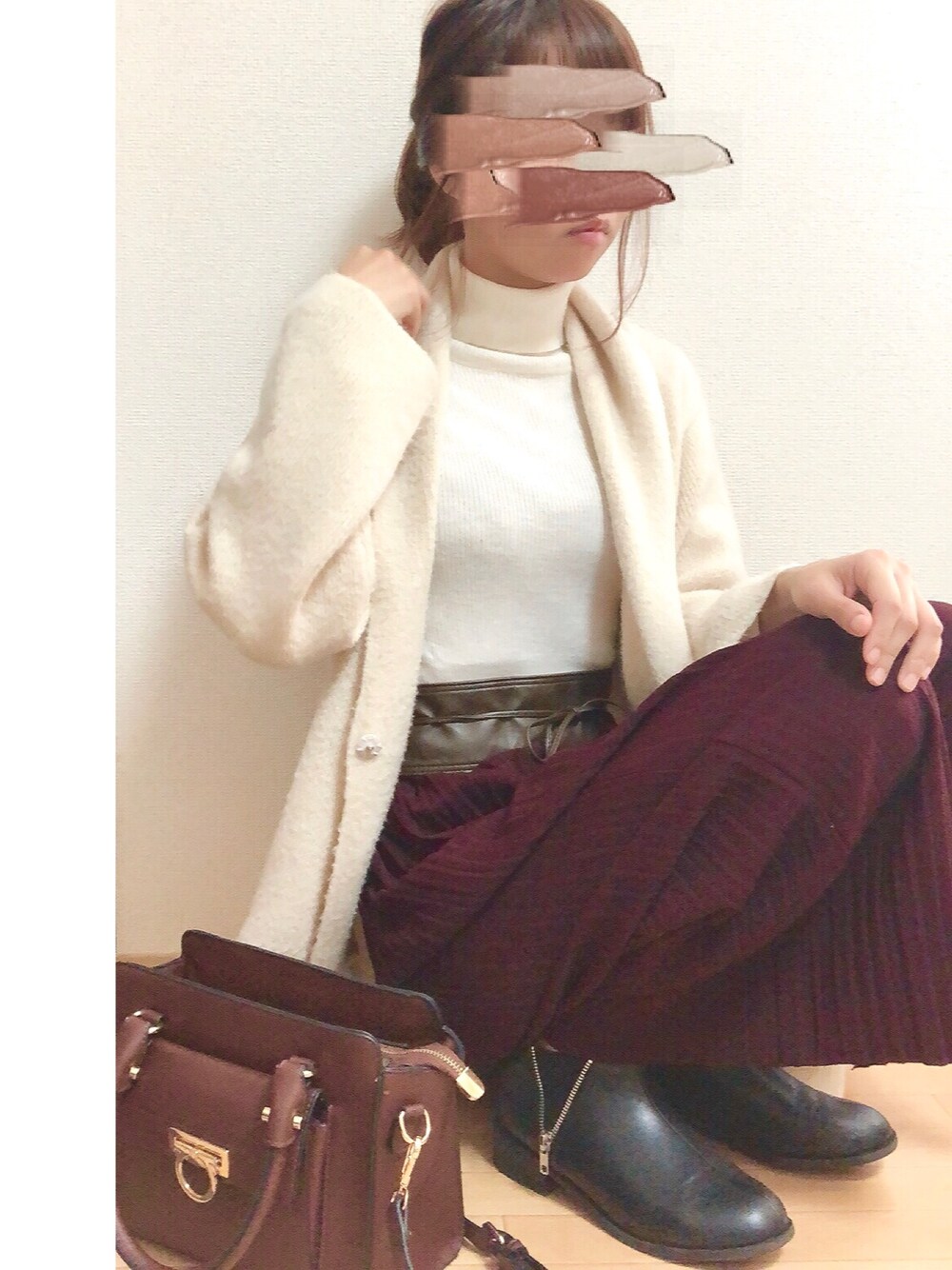 ご覧いただきありがとうございます😊 タグを盛り込んだコーデ🙆♀️ プリーツパンツは柔らかくて履き心地いいです。色合いも好きです☺️ GUのサッシュベルトでウエストマーク。ボルドーとブラウンの組み合わせが好き🙆♀️ いいね、お気に入り、フォローも本当にありがとうございます🙇♀️✨