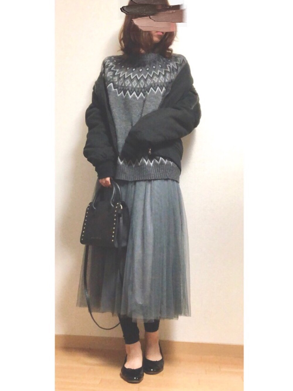 ご覧いただきありがとうございます😊 こないだのコーデの立ってるバージョン🙌 このノルディック柄のニット分厚いので寒いときは重宝します…🤤 全体的にモノトーン、ワントーンにしました! いいね、お気に入り、フォローも本当にありがとうございます!🙇♀️✨