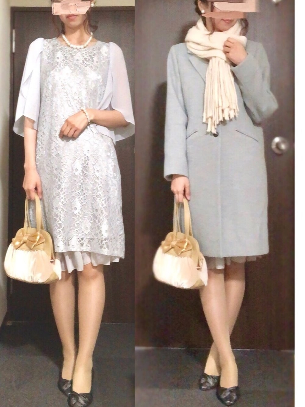 ご覧いただきありがとうございます😊 友人の結婚式に…! 撮った位置が違うのでおかしなことになってますが…w 本当このワンピースが好きすぎて🤤✨ 上品な感じでとても良きです🙆♀️💕 丈が気になったので防寒対策も兼ねてインナースカートをチラ見せ🤗 グレーのチェスター羽織って全身グレーな人になってました🤗 バッグの素材はベルベットな感じでとても手触りがいいです。もう何年も前のものですが☺️ いいね、お気に入り、フォローも本当にありがとうございます!🙇♀️💕