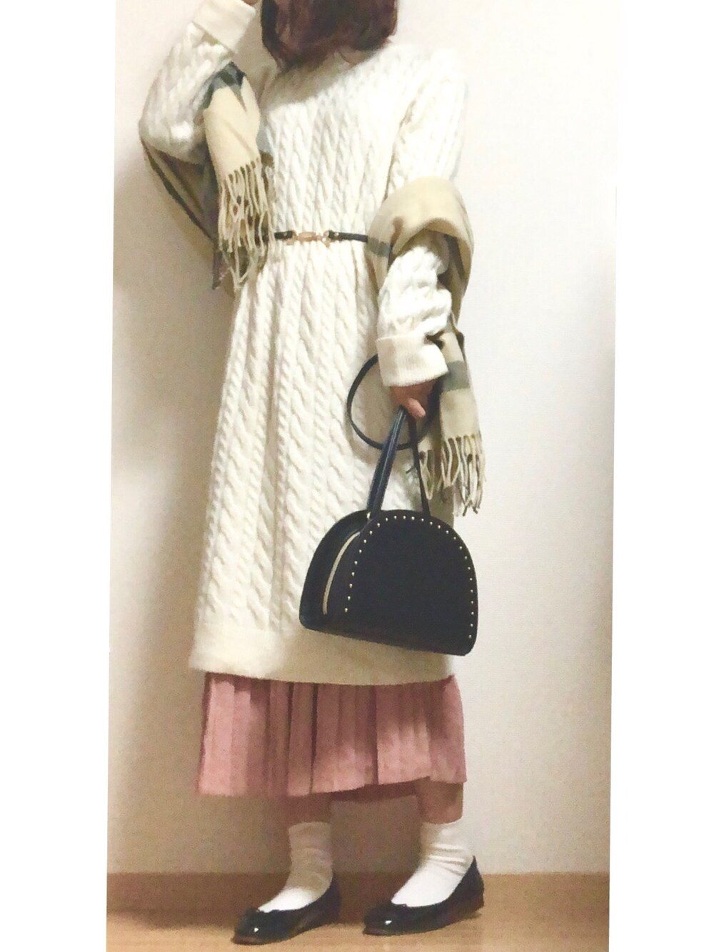 cocona*のワンピース「ケーブルニットワンピース XL」を使ったコーディネート