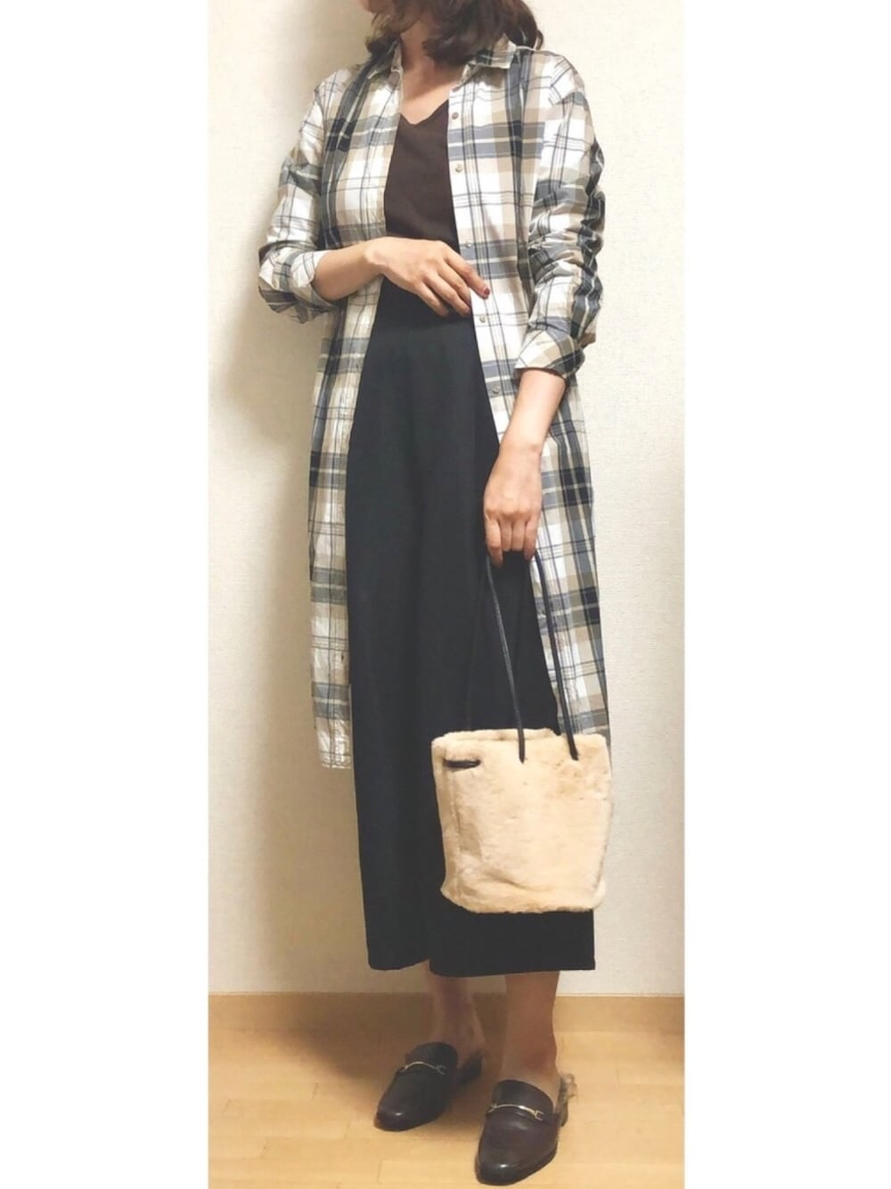 ご覧いただきありがとうございます😊 チェックシャツワンピを羽織りとして着用🙌 インナーとパンツ、靴も茶系と黒でシンプルにしました。 ファーで秋らしさを☺️🍁 いつもいいね、お気に入り、フォローも本当にありがとうございます!🙇♀️✨