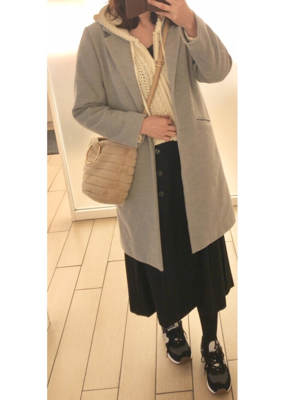 ご覧いただきありがとうございます😊 グレーのチェスターコートでモノトーンコーデ🙌 ニットパーカーとのレイヤード🧶 足元はスニーカーでカジュアルダウン👟 いつもいいね、お気に入り、フォローも本当にありがとうございます!🙇♀️✨