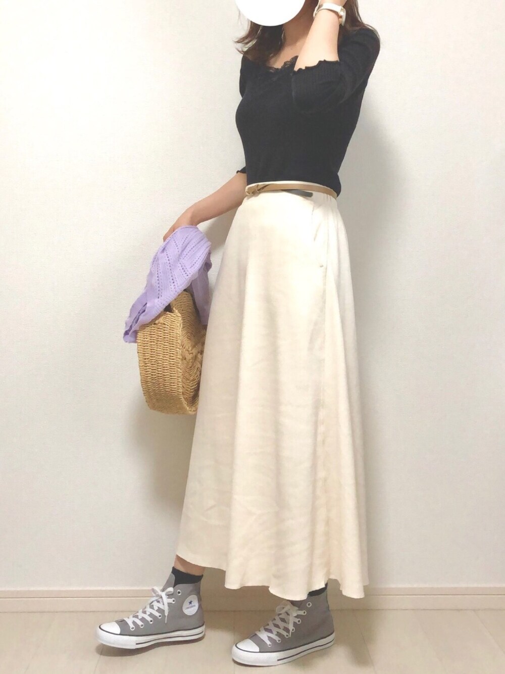 ご覧いただきありがとうございます😊 暑くなってきたので昼間はカットソー1枚で充分、半袖でもいいですね。 ラベンダーカラーを差し色にカーディガンをプラス^_^ トップスはタイトに、フレアスカートでボリュームを🙆♀️ いつもいいね、お気に入り、フォローも本当にありがとうございます🙇♀️🍀