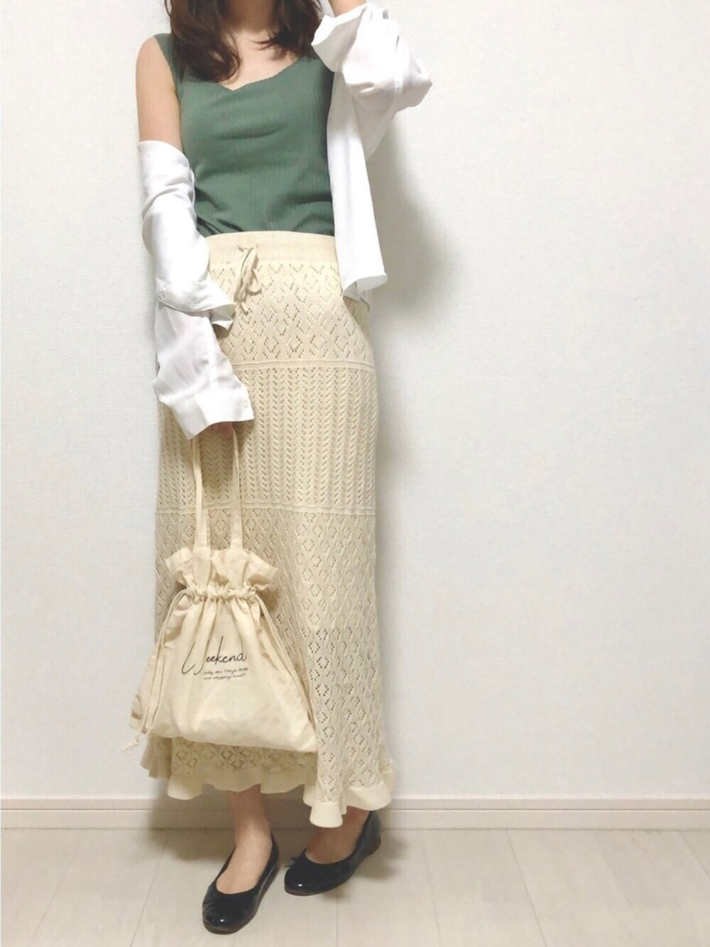 ご覧いただきありがとうございます☺︎ ホワイト×グリーンで爽やかコーデ🍀 リブの太さがとても好みのユニクロのブラトップ✨これにシャツ羽織っておけばコーデが簡単に決まるからとても楽🙆♀️ エクリュカラーの透かし編みニットのスカートと合わせて女っぽコーデに🙌 いつもいいね、お気に入り、フォローも本当にありがとうございます🙇♀️🍀