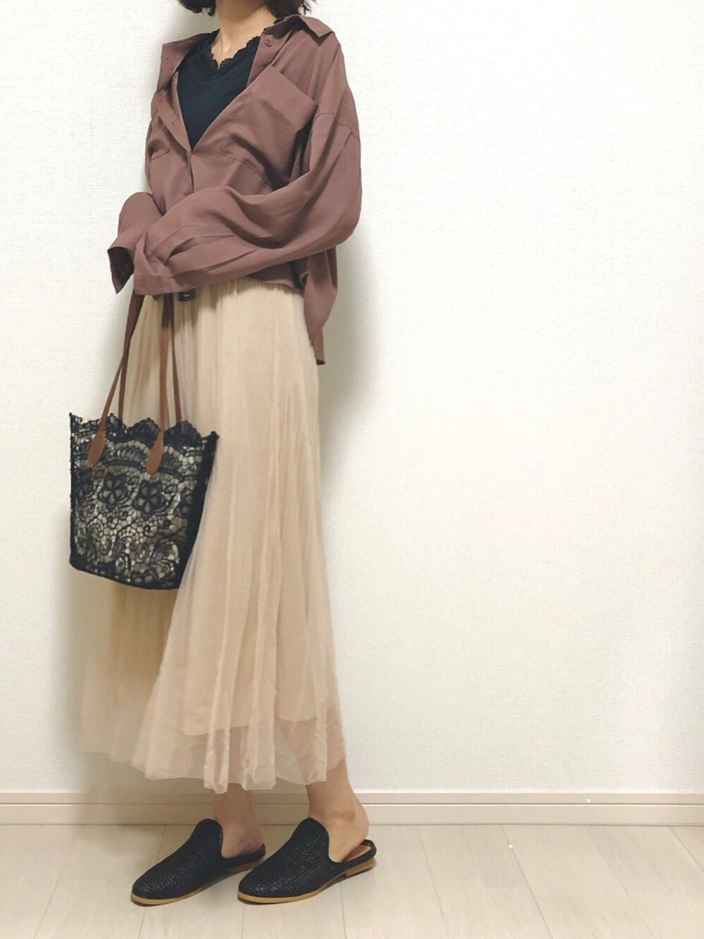 cocona*のシャツ/ブラウス「ゆるサテンシャツ」を使ったコーディネート