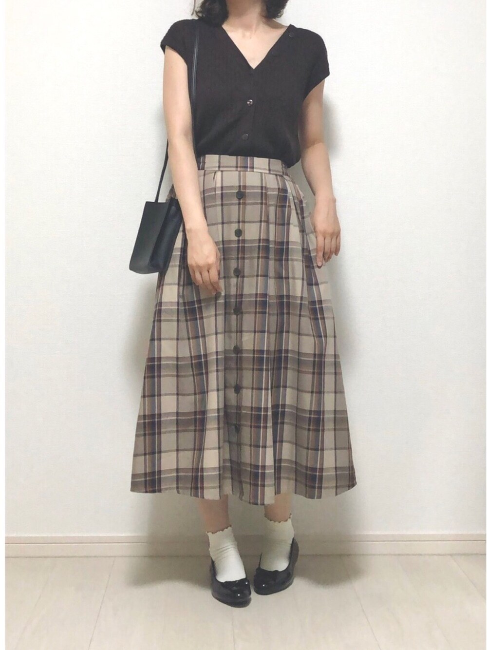 ご覧いただきありがとうございます☺︎ ブラウンのチェック柄スカートで一気に秋感のあるワントーンコーデ🍂 このスカートはとてもお気に入りなので今年もたくさん着たいと思います^_^♫ いいね、お気に入り、フォローも本当にありがとうございます🙇♀️✨