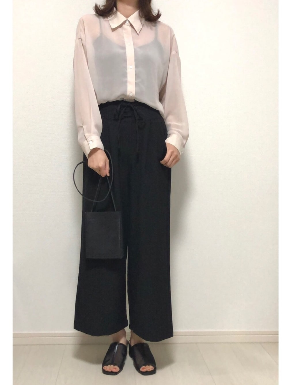 ご覧いただきありがとうございます☺︎ シアーシャツはほんのりベージュがツボで、しまむらで買いました♫ 多分1200円くらいでした☺️ シアーサンダルもパンツもブラックで揃えました👡 いつもいいね、お気に入り、フォローも本当にありがとうございます🙇♀️✨