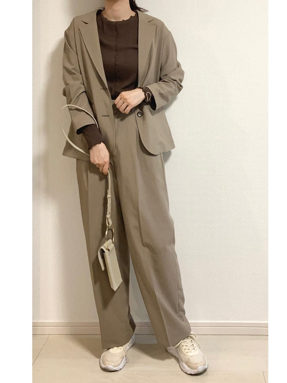 ご覧いただきありがとうございます🙇♀️ 秋色ですがセットアップコーデ🙌 ジャケットは薄手で軽いので、これからの時期、気温調節に良きです。シルエットも好きです^_^ いつもいいね、お気に入り、フォローも本当にありがとうございます🙇♀️❣️