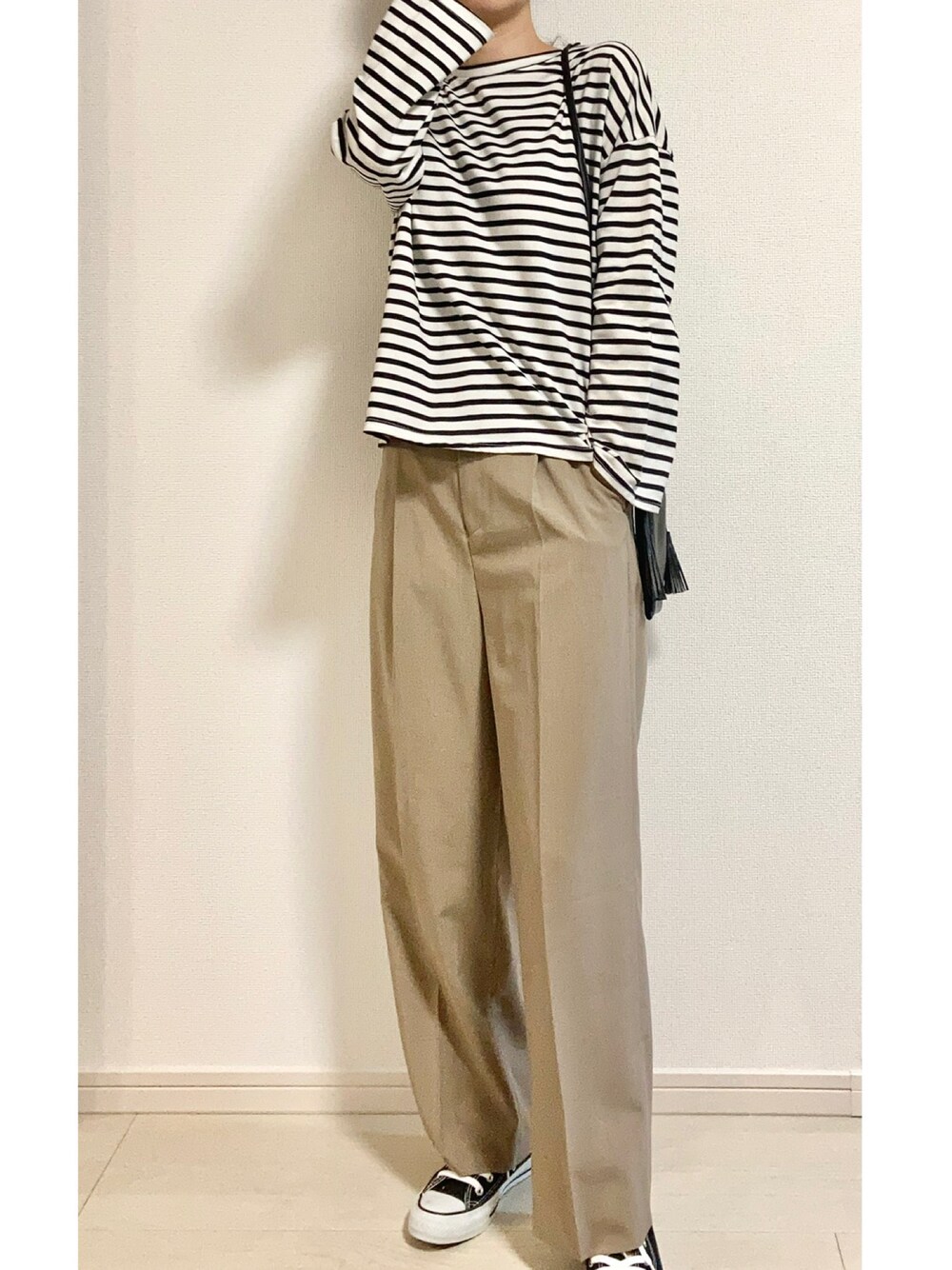 ご覧いただきありがとうございます☺︎ ローリーズファームのパンツの着回し(って言っても2つだけ) 好きすぎてよく履いてます^ ^ ボーダートップスとスニーカーでカジュアルに👟もう一つは先日のブラウンのトップスと。 いつもいいね、お気に入り、フォローにフォルダインも本当にありがとうございます🙇♀️❣️