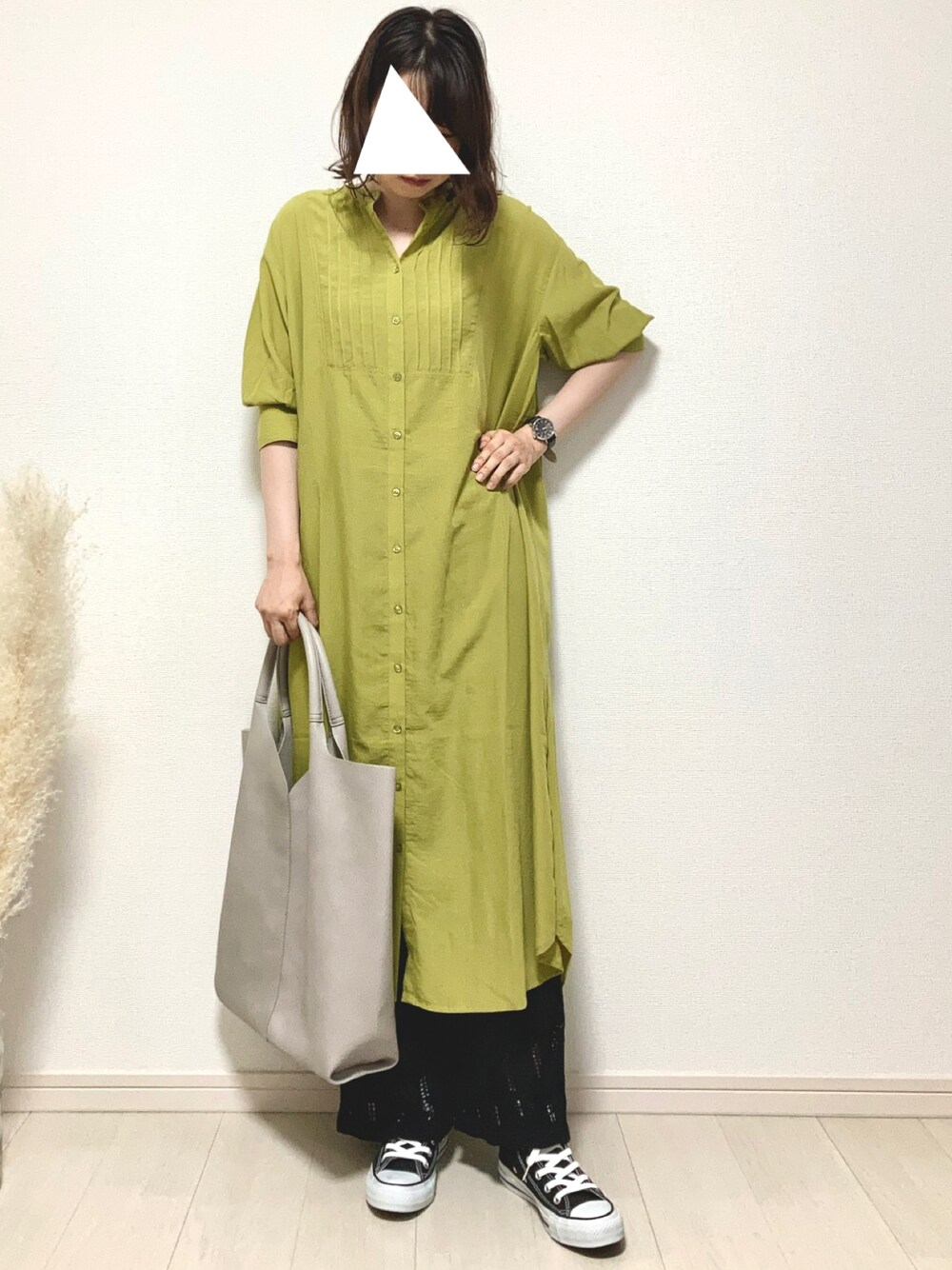 cocona*のシャツワンピース「ピンタック ボザム 五分袖 シアーシャツ ワンピース」を使ったコーディネート