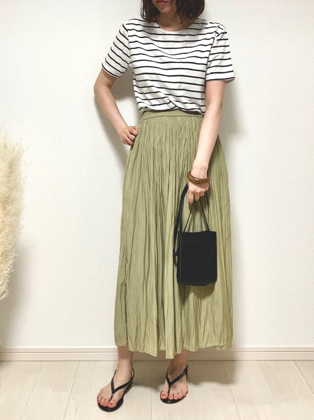ご覧いただきありがとうございます☺︎ 夏のちょっとそこまでコーデ☀️ ボーダーTに、ピタッとしないプリーツパンツとトングサンダル。SALEで購入してから履きやすくて気に入ってます(^^) いいね、お気に入り、フォローやフォルダINも本当にありがとうございます🙇♀️✨