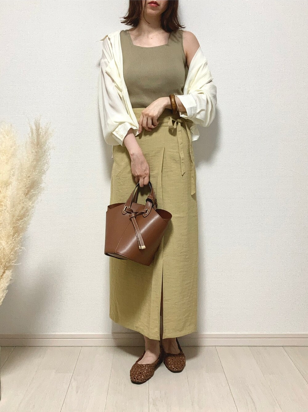 ご覧いただきありがとうございます☺︎ イエロースカートを中心にワントーンコーデに🌻 スカートはベージュ寄りのイエローなので、ベージュのニットタンクと合わせやすくて淡色コーデにも見える感じに🙌 シャツを開けてればIラインシルエットで縦長効果…かな?笑 小物はブラウンでちょっと引き締め🙆♀️🟤 連日暑い日が続いていてバテ気味です…🫠 今週末まで特にヤバいみたいなので熱中症に気をつけましょう💪 いつもいいね、お気に入り、フォローやフォルダINも本当にありがとうございます。とても嬉しいです🙇♀️✨