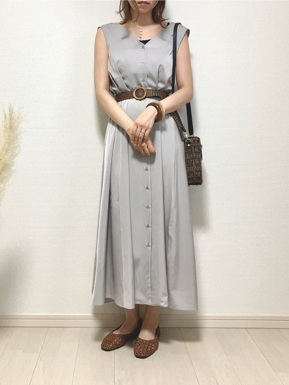 cocona*のワンピース「Vネックマキシワンピース」を使ったコーディネート