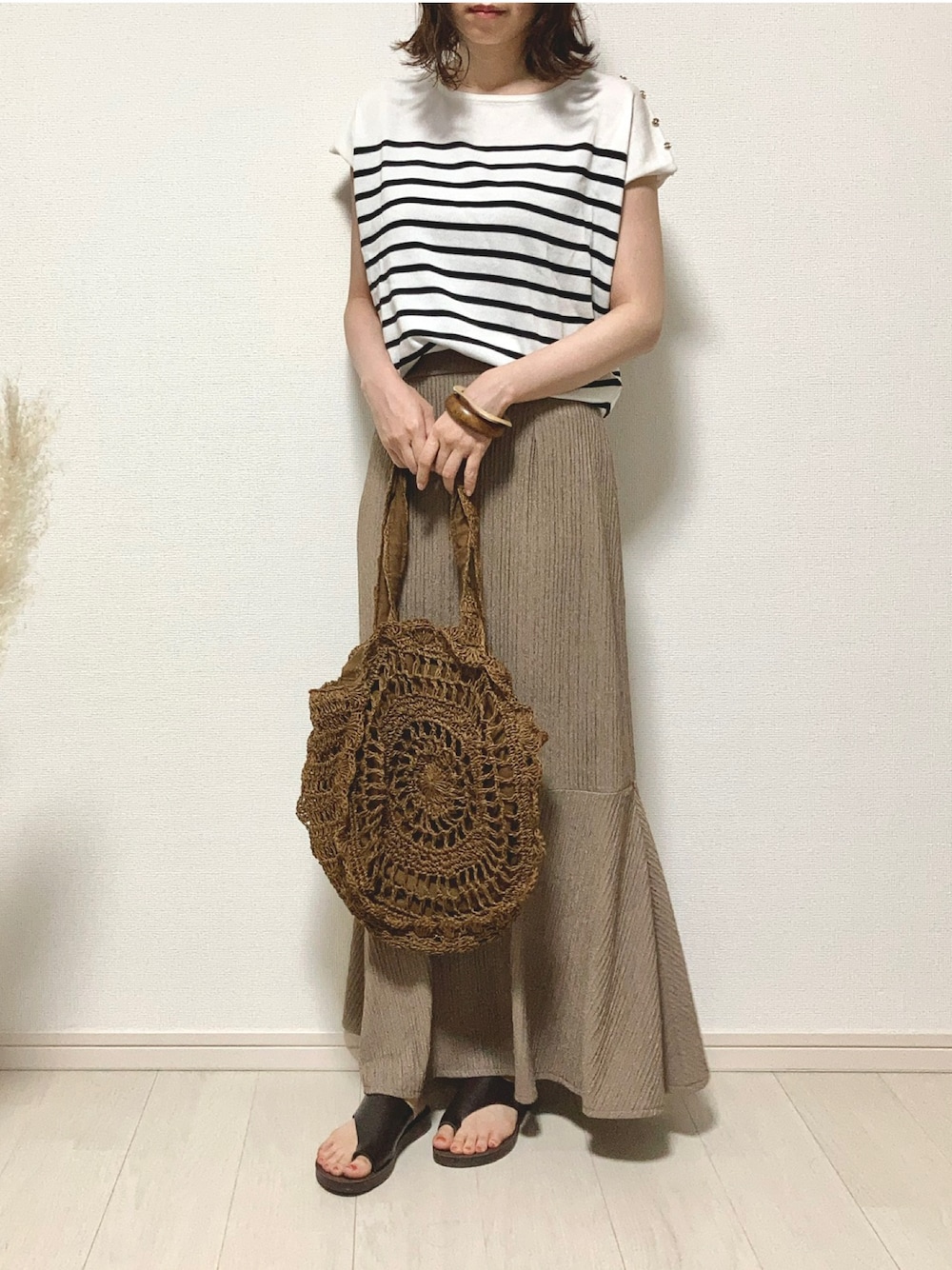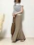 ご覧いただきありがとうございます☺︎ しまむらのボーダートップスと、マーメイドスカートのコーデ🧜♀️ トップスはサマーニットでサラッとしてて着心地も良いです。フレンチスリーブなのも好みです🙆♀️ スカートはMだとトップスをインした時などにお尻あたりが目立つのでLにしました🙌なのでウエストは少し緩いです💦 でもこちらも薄手で透け感もなく、これからの時期履きやすいです。ぽこぽこした質感の生地です^_^ いつもいいね、お気に入り、フォローやフォルダINも本当にありがとうございます☺︎ とても嬉しいです🙇♀️✨