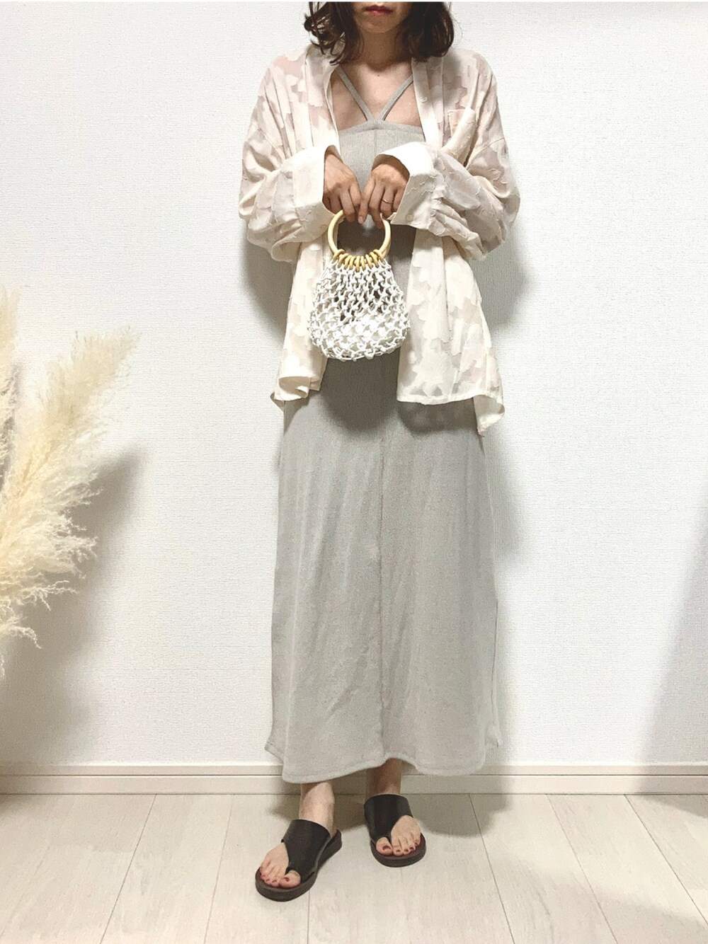 ご覧いただきありがとうございます☺︎ ワンピースにフラワージャガードのシアーシャツを羽織りました🙌 フラワーモチーフは大きめでそれがまた可愛いです☺︎ いつもいいね、お気に入り、フォローやフォルダINも本当にありがとうございます🙇♀️とても嬉しいです✨