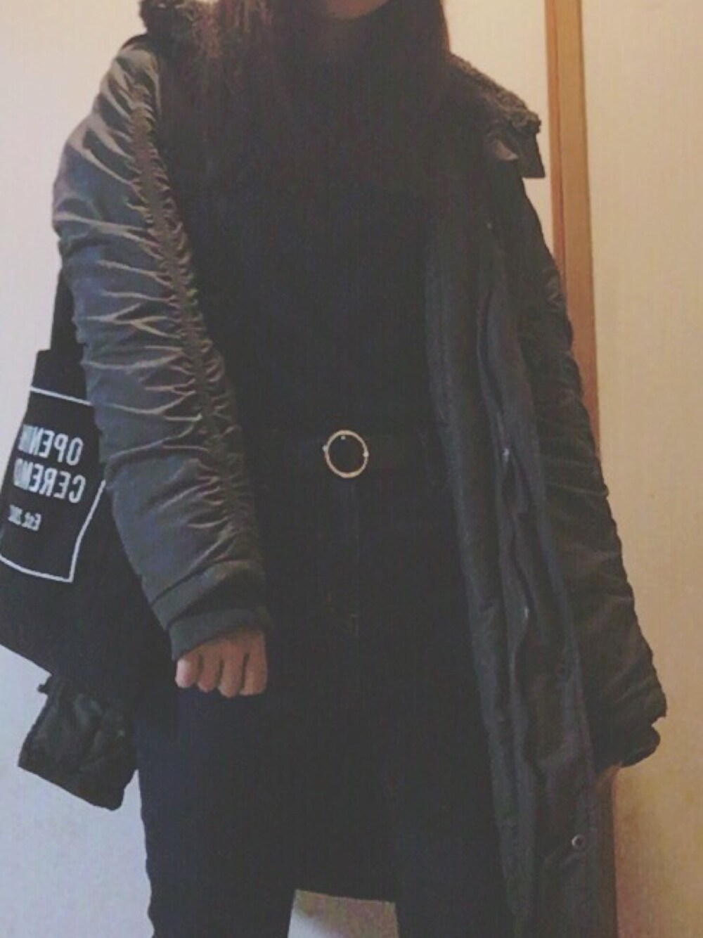 中学時代に活用していたでかめのミニタリージャケットを数年ぶりに着用☺️ 極寒の中めちゃめちゃ暖かい⛄️