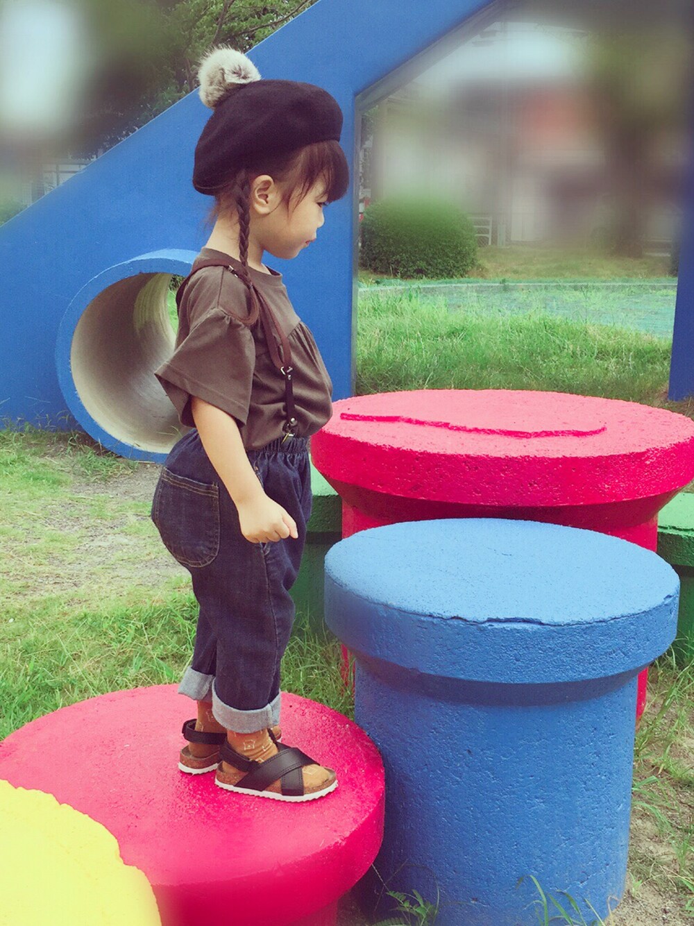 きょうの娘👧 秋色コーデ🍂 プチプラコーデばっかりでごめんよ🙇♀️ MPSのトップスは100cm お腹ぽっこり娘でも ジャストサイズでも大丈夫でした🙆