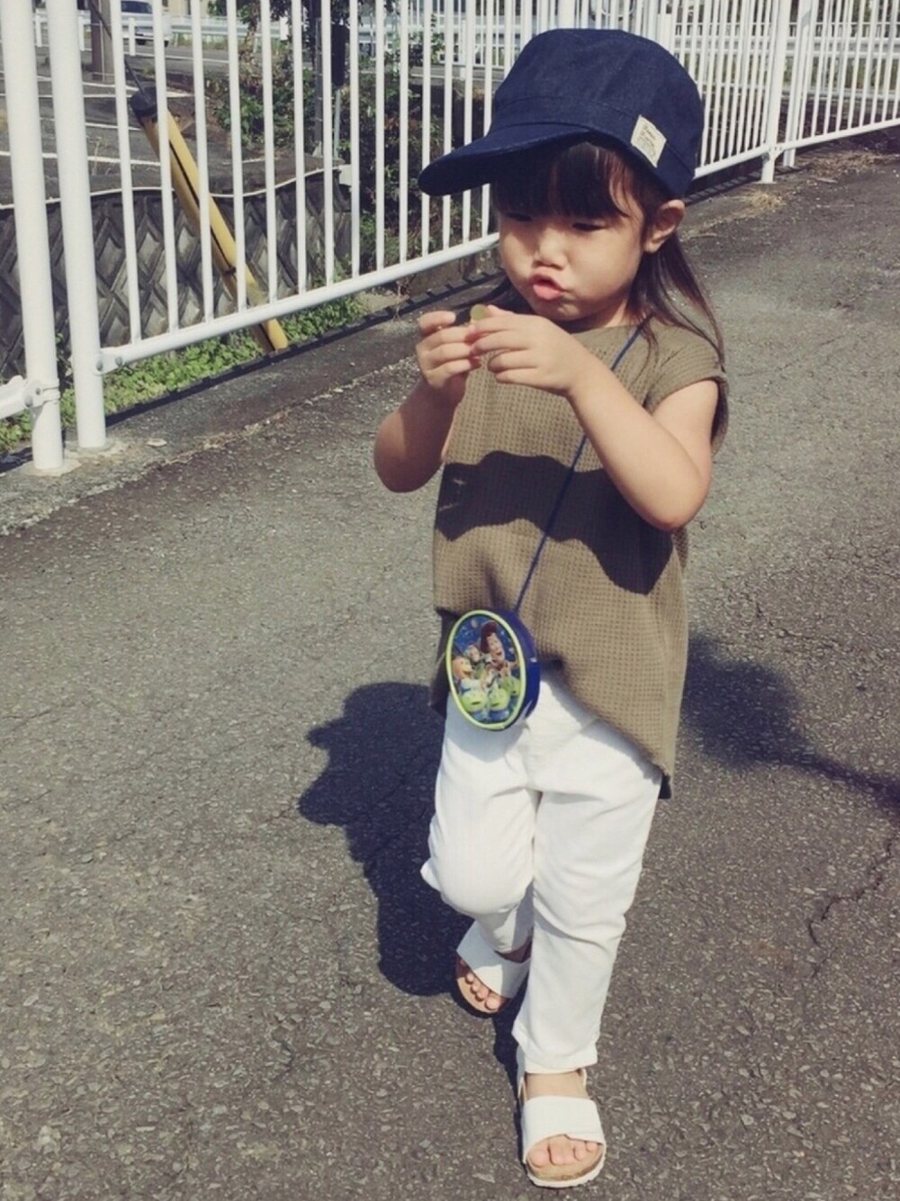 dropのTシャツ/カットソー「【ママとお揃い】キッズワッフルノースリーブTee」を使ったコーディネート