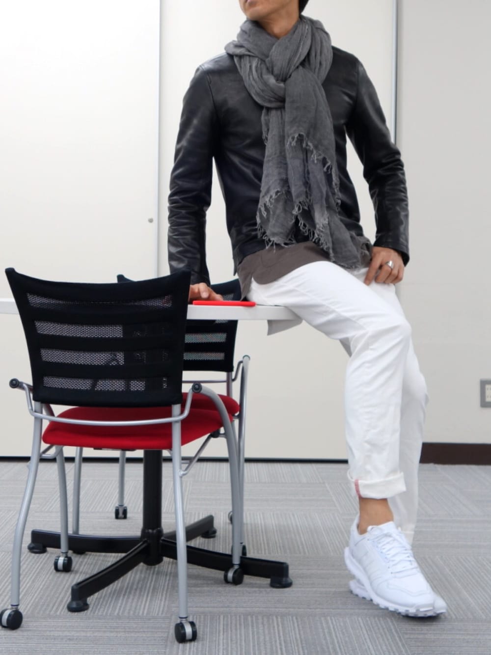 久しぶりにコーデUP。やっと暖かくなってきたので春らしいコーデと思ったのですが、AWであまり着用できなかったRAINMAKERの「CREW-NECK LEATHER SHIRTS」をメインに夜のお花見行けるスタイルを。 レザーシャツのインナーは16SSのTUNIC SHIRTS(BROWN)をあわせ、パンツは復活のjunhashimoto×EDWINのバナナを。足元はadidas Originals by White Mountaineeringのスニーカーで。