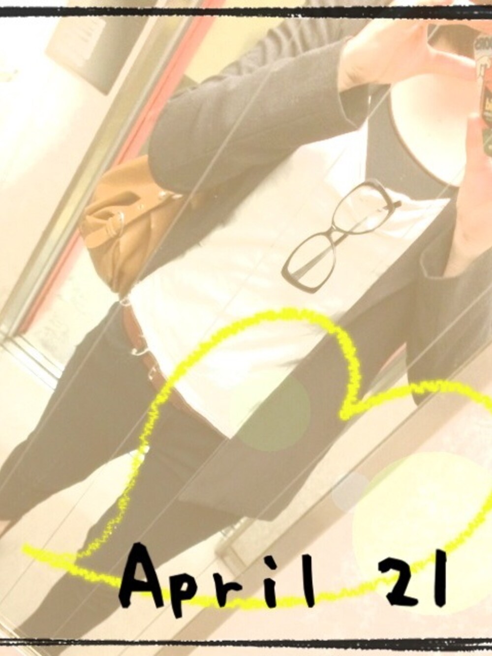 戦闘服です。 嘘です。 通勤服です。 モノトーンコーデはらくちん( ˭̵̵̵̵͈́◡ु͂˭̵̵̵͈̀ )ˉ̞̭♡ ジャケット→22OCTBRE カットソー→LOWRYS FARM パンツ→GU パンプス→H&M